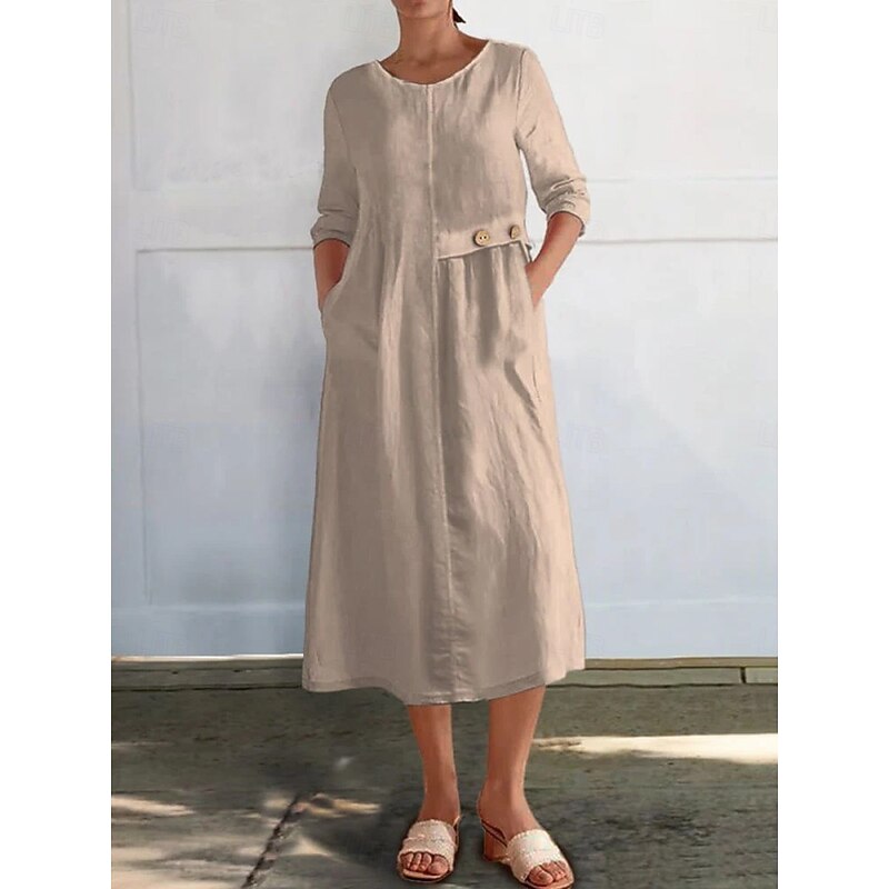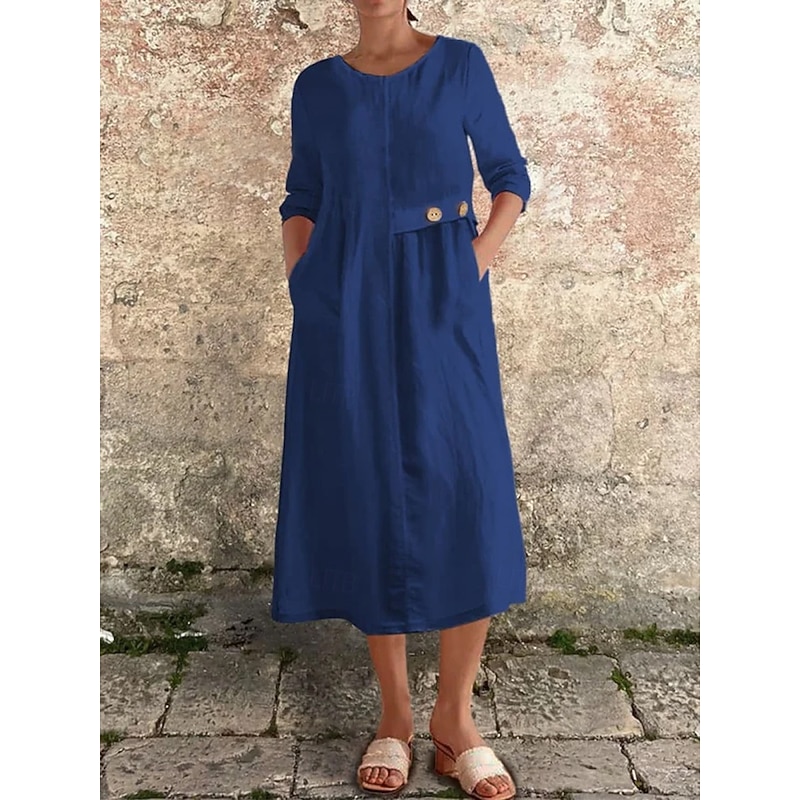 More information about Women's Midi Dress Casual Dress Cotton Linen Dress Basic Modern Daily Weekend Regular Fit Plain 3/4 Length Sleeve Crew Neck Black White Yellow Red Summer Spring Fall