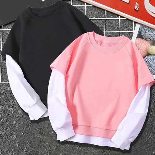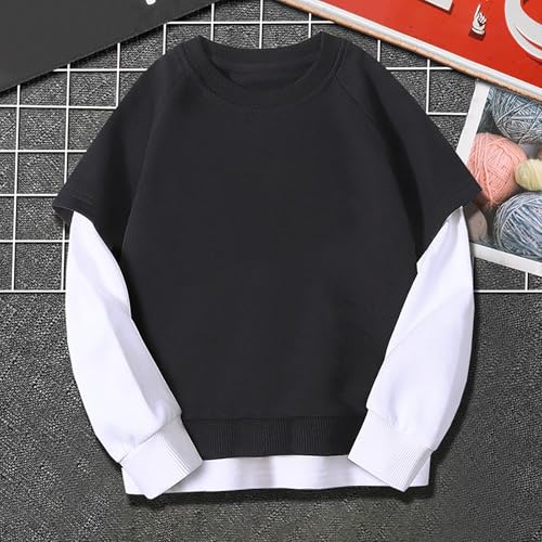 Kids Boys Girls Color Block Pullover Sweatshirts Y2K Streetwear Trendy Oversized Shirts Fall Winter Warm Clothes 6