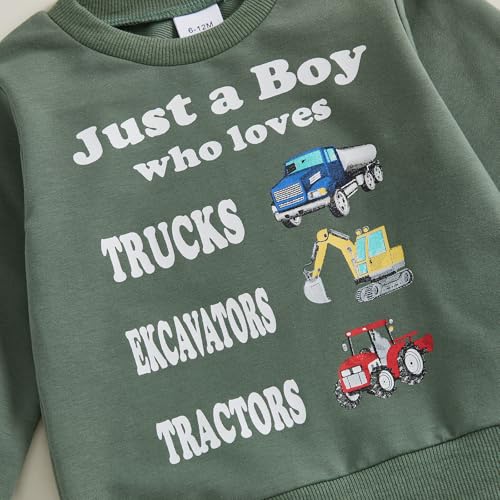 WZTYYDS Toddler Baby Boy Clothes Set Truck Letter Print Crew Neck Long Sleeve Sweatshirt Elastic Pants 2Pcs Fall Outfits 7