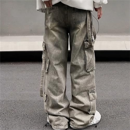HOT ! Men Jeans American Straight Tube Mud Dyed Loose Multi Pocket Workwear Pants Vintage Male Trousers