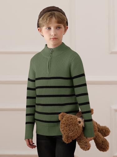 HOT ! Haloumoning Boys Striped Quarter Zip Sweater Kids Fashion Long Sleeve Knit Pullover Sweaters Tops 5-14 Years
