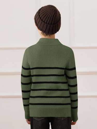 Haloumoning Boys Striped Quarter Zip Sweater Kids Fashion Long Sleeve Knit Pullover Sweaters Tops 5-14 Years 3