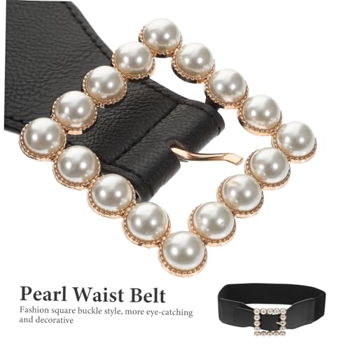 FRCOLOR Elastic Pearl Waistband Ladies Cummerbund with Fashion Square Buckle Alloy Material for Dress Jeans Trousers and Skirt Decoration Stylish Women 1