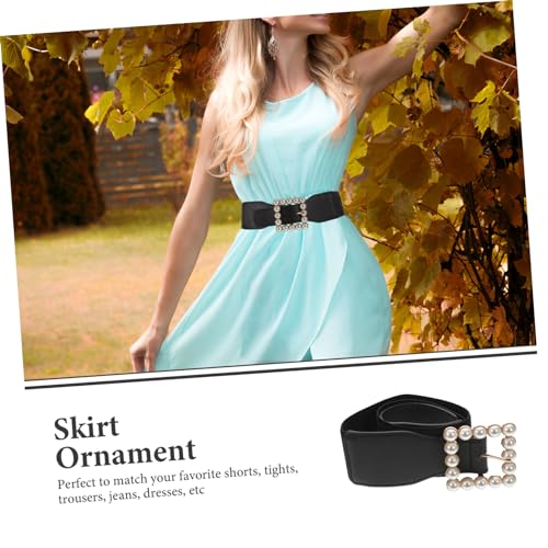 FRCOLOR Elastic Pearl Waistband Ladies Cummerbund with Fashion Square Buckle Alloy Material for Dress Jeans Trousers and Skirt Decoration Stylish Women 7