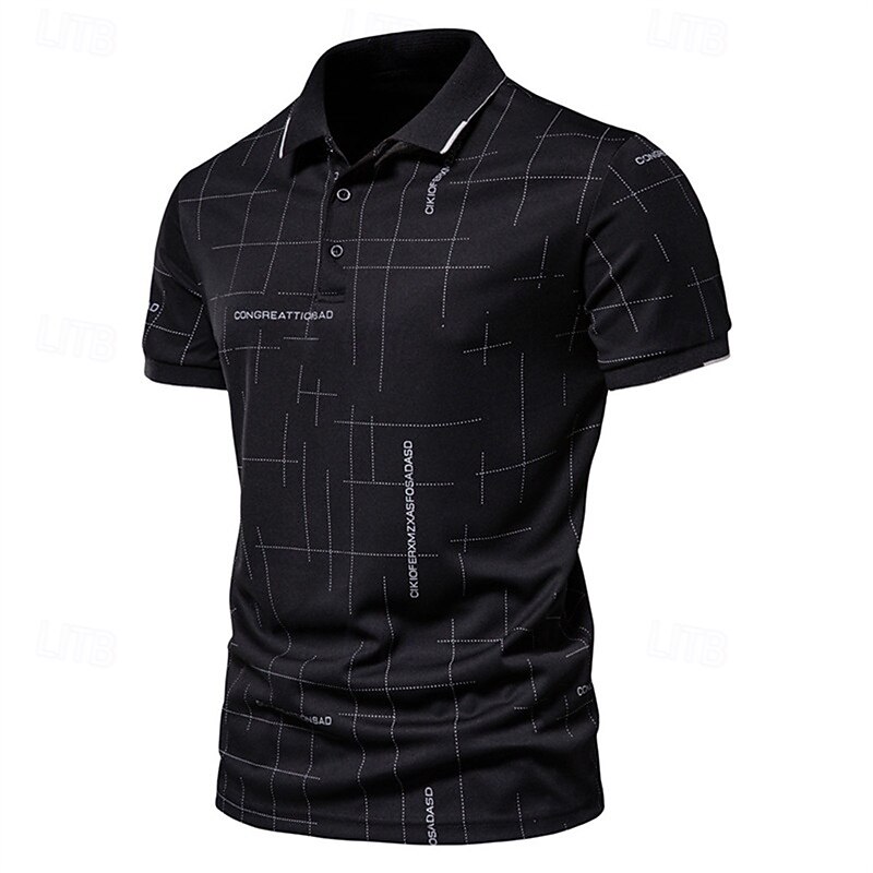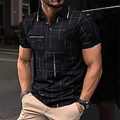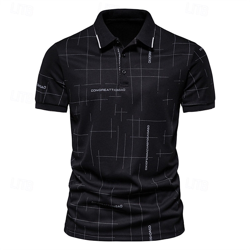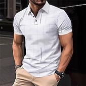 More information about Men's Polo Button Up Polos Casual Sports Lapel Short Sleeve Fashion Basic Plaid Buttons Summer Spring Black White Polo