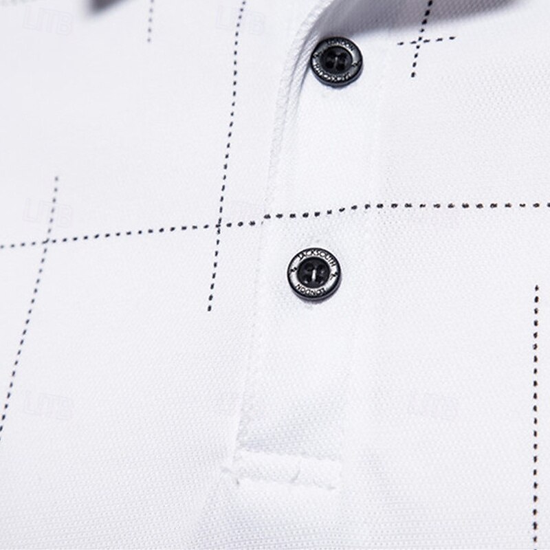 Men's Polo Button Up Polos Casual Sports Lapel Short Sleeve Fashion Basic Plaid Buttons Summer Spring Black White Polo 7