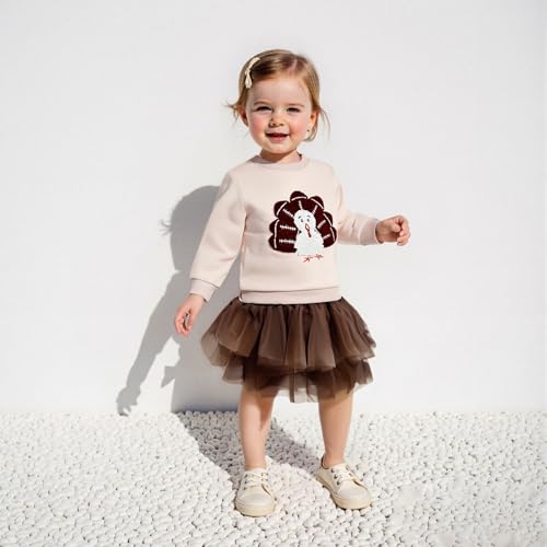 Toddler Baby Girl Thanksgiving Outfit Football Turkey Embroidery Sweatshirt Tulle Layered Skirt 2Pcs Clothes Set 7