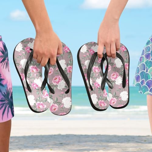 More information about Floral Leaves Pink White Flip Flops for Beach Thong Sandals Anti-slip Lightweight Shower Shoes for House Indoor Outdoor