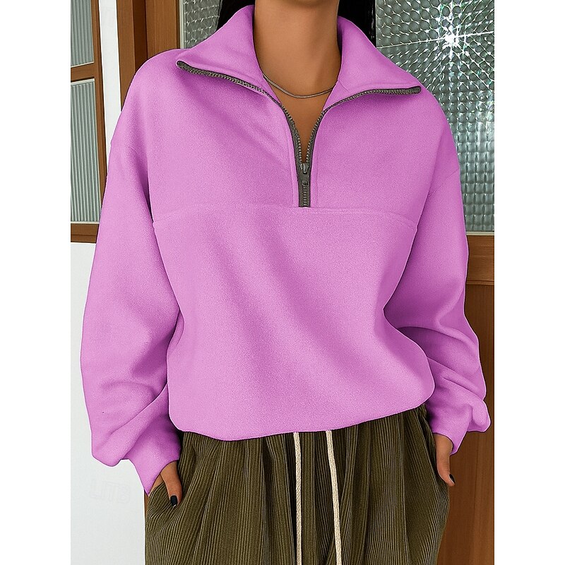 HOT ! Women's Zip Up Sweatshirts Casual Long Sleeve Round Neck Regular Tops Light Pink Yellow Dark Pink Blue Gray Fall Winter
