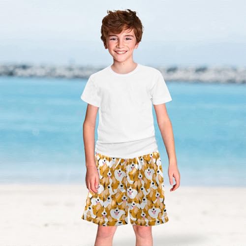 Boys Swim Trunks Quick Dry Corgi Dog Beach Board Shorts with Mesh Lining Youth Swimwear 2-12T 5