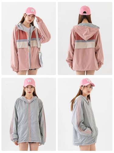 HOT ! Women's Reversible Waterproof Jacket Lightweight Outdoor Windbreaker Hood Pockets Travel Trekking Camping