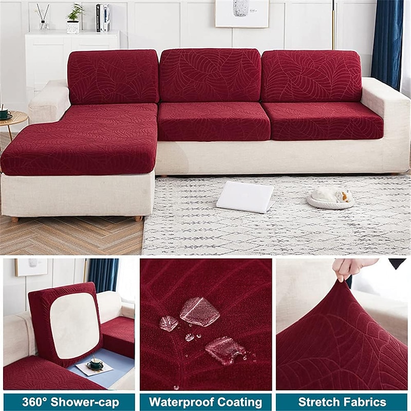Stretch Water Repellent Sofa Seat Cushion Cover Burgundy Jacquard Slipcover Elastic Couch Armchair Loveseat 4 or 3 Seater Grey Plain Solid Soft Durable Washable 9