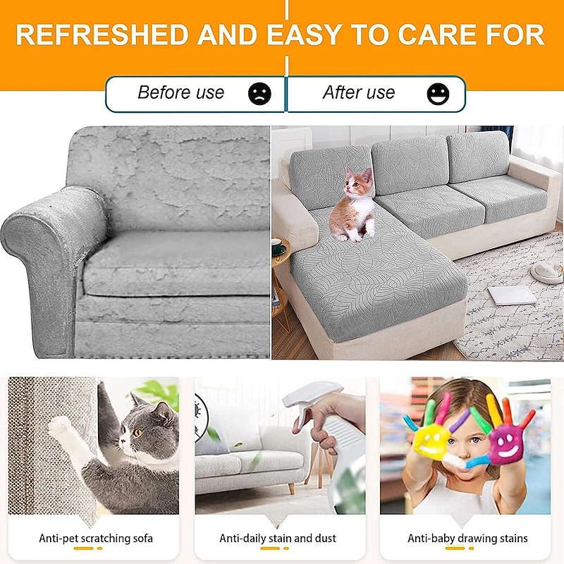 Highlights About this item: 1. WATER REPELLENT- (Not 100% waterproof): Our Water-Repellent sofa seat cushion covers can protect your couch seat from wet stains, spills and tearing, especially for homes with kids and pets. Warm Note: Please wipe off the liquid spilled on the sofa immediately, it is not 100% water proof. 2. HIGH QUALITY MATERIAL: Crafted from luxurious plush fabric, high stretchy and durability, extra soft, thick and comfortable, which dress your furniture a new decent visual. 3. EASY CARE: Machine washable, Wash in cold water on agentle cycle with mid laundry detergent, Do not use bleach, Iron on a low heat. 4. SLIGHT COLOR NOTE: Please note that slight color difference should be acceptable due to the light and screen. WATER REPELLENT STRETCH EASY INSTALL SLIGHT COLOR NOTE