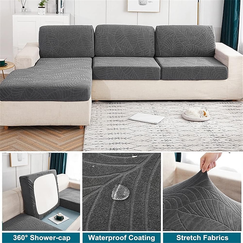 Stretch Water Repellent Sofa Seat Cushion Cover Burgundy Jacquard Slipcover Elastic Couch Armchair Loveseat 4 or 3 Seater Grey Plain Solid Soft Durable Washable 36
