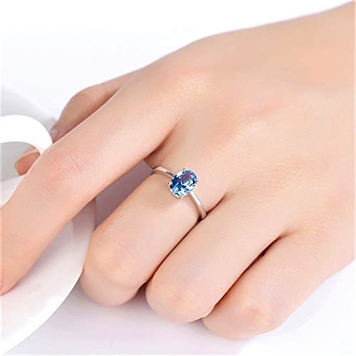 HOT ! Blue Topaz Oval Cut Engagement Ring in 925 Stering Silver, Natural Gemstone Birthstone Lovely Anniversary, Birthday, Valentine’s Day Present
