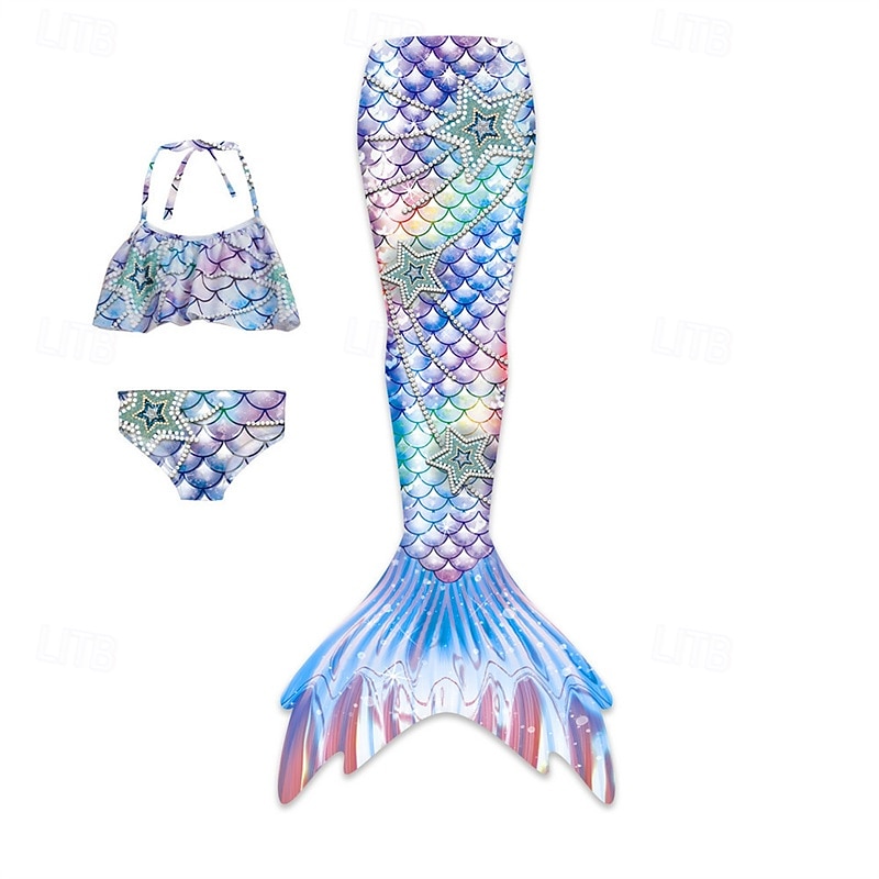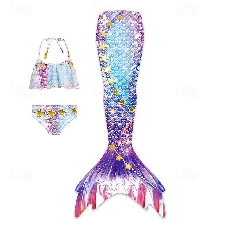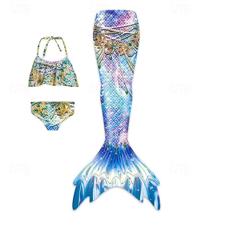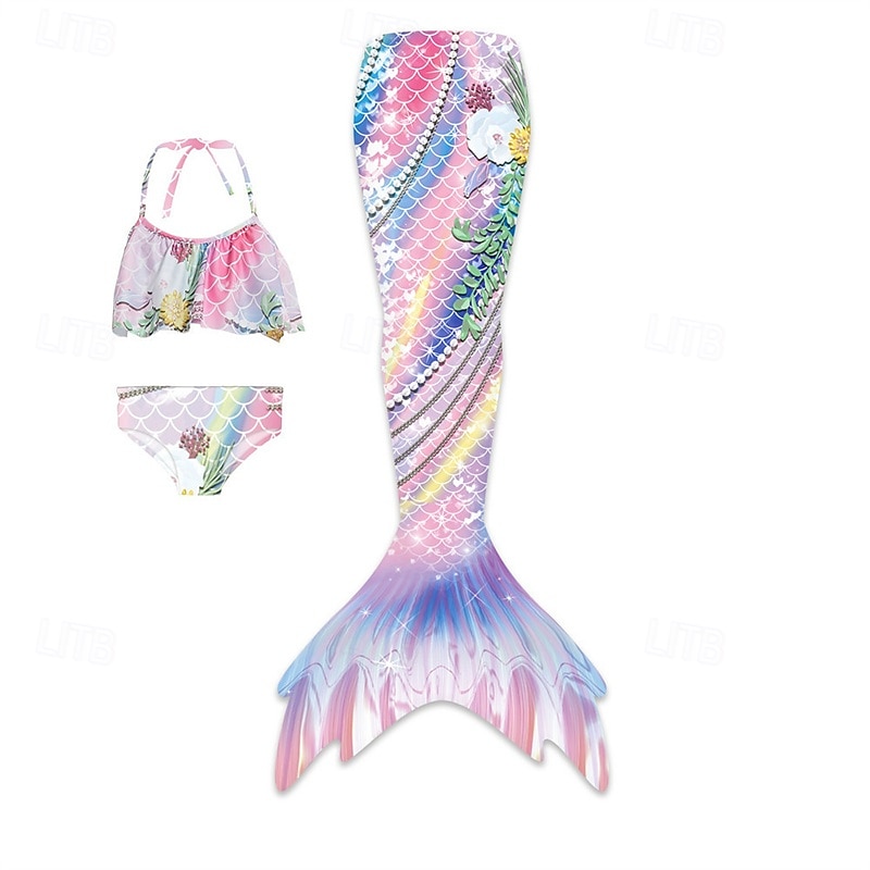 Kids Girls' Mermaid Swimwear Swimsuit Holiday Beach Scales Vacation Tropical Bathing Suits 4 years+ Summer Light Pink Yellow 19