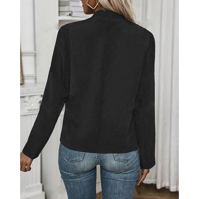 HOT ! Women's Fashion Streetwear Blazer Sweatpants Long Sleeve Shirt Collar Plain Work WorkWear Black White Navy Blue Fall Regular Fit