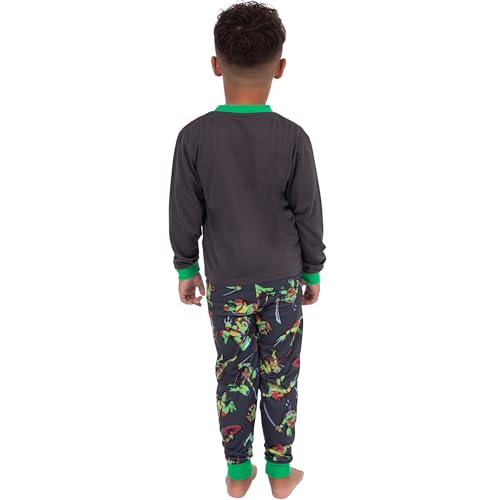 • Awesome All Over TMNT Print: The long-sleeve top is paired with elasticated gray PJ bottoms featuring an all-over print of the heroic Teenage Mutant Ninja Turtles; these kids' pajamas are designed to turn bedtime into an exciting superhero mission
