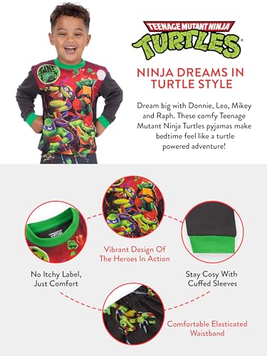 • Playful TMNT Pajamas: Get your little ninja turtle ready for bedtime adventures with these super cool long sleeve pajamas for boys; featuring Donatello, Michelangelo, Raphael, and Leonardo jumping into action