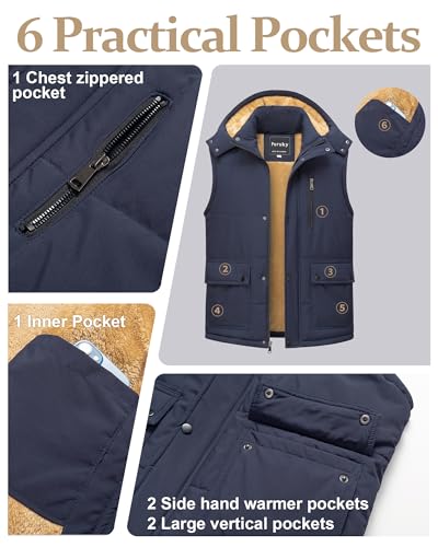 Pursky Men's Winter Puffer Vest Warm Fleece Lined Quilted Puffy Sleeveless Jacket Casual Outdoor Vests 6
