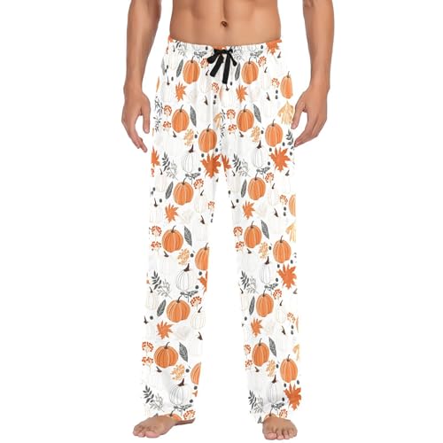 HOT ! Thanksgiving Autumn Fall Pumpkin Leaves Men's Pajama Pants Cotton Sleep Bottoms with Drawstring A2304545