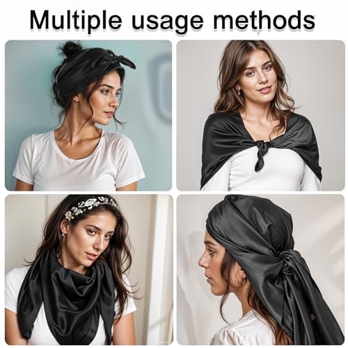 • Size: This black large square scarf measures 35.43 × 35.43 inches / 90 × 90 cm and contains 2 pieces per package. This large size not only provides a better wrap, but also allows you to look elegant for many occasions. You can use this square scarf as a shawl, a scarf or a headscarf