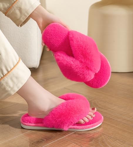 HOT ! Onmygogo Plush Indoor Flip Flop Thong Slippers for Women Open Toe, Fuzzy Faux Fur Spa House Slippers