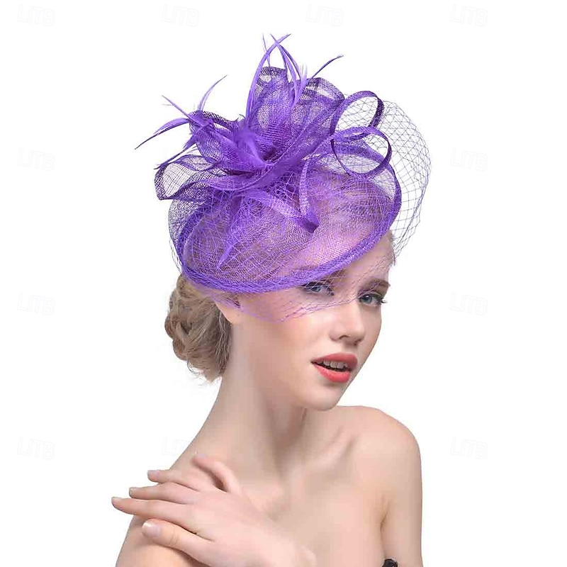 Fascinators Organza Beret Hat Fedora Hat Floppy Hat Holiday Tea Party Kentucky Derby Horse Race Ladies Day Elegant Vintage Simple With Feather Pure Color Headpiece Headwear 24