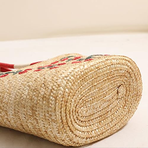More information about Women's Straw Shoulder Bag Large Rattan Woven Cherry Embroidered Summer Travel Beach Handbag Handmade Handle Purse