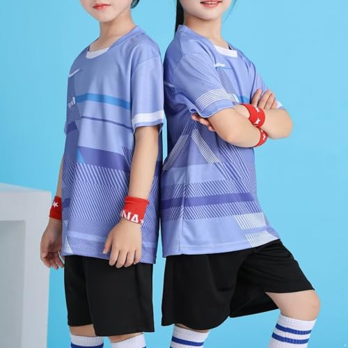 Hansber Kids Boys Girls Athletic Soccer Outfit Short Sleeve Contrast Color T-shirt with Loose Shorts Set Purple 9-10 Years 1
