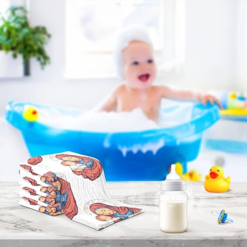 vvfelixl Colorful Madonna Hold Toddler Baby Burp Cloths Baby Muslin Washcloths for Boys Girls Cotton Babys Face Towel for Newborn Infants Soft and Absorbent 11.8 X 11.8 in, 5 Pack 4