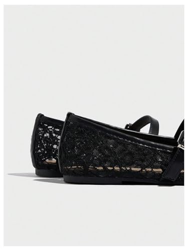 HOT ! MakeMeChic Women's Lace Mesh Ballet Flats Shoes Square Closed Toe Mary Jane Shoes Breathable Summer Flats