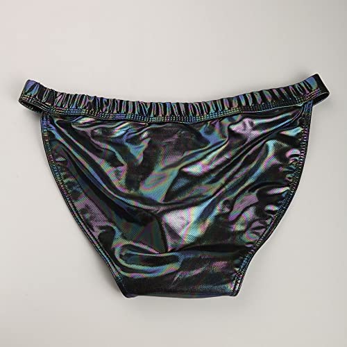 Gogobear Mens Reflective Metallic Laser Faux Leather Swim Bikini Briefs Side Snap Fastener G-String Thong with Hip Coverage 6
