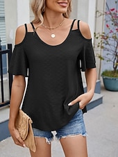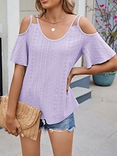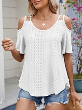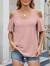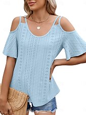 More information about Women's Shirt Blouse Solid Color Stylish Casual Short Sleeve Strap Regular Tops Daily Eyelet Sage Green Black White Pink Sky Blue Summer