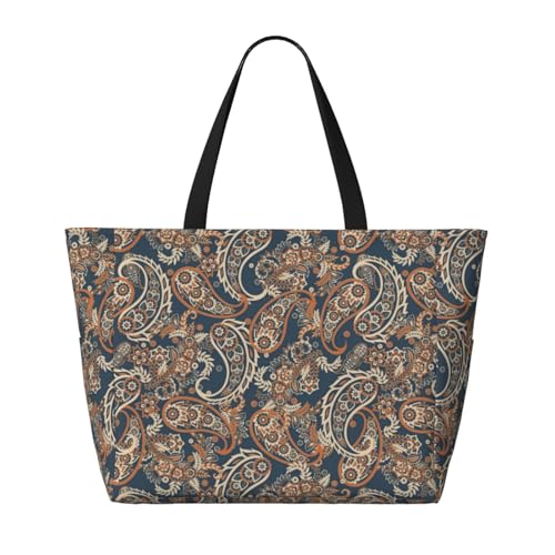 HOT ! Paisley Pattern No.9081 Large Beach Bag Waterproof Sandproof Swim Tote Pool Bag For Women With Zipper