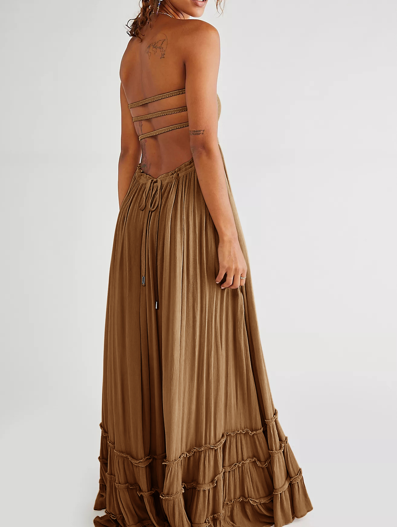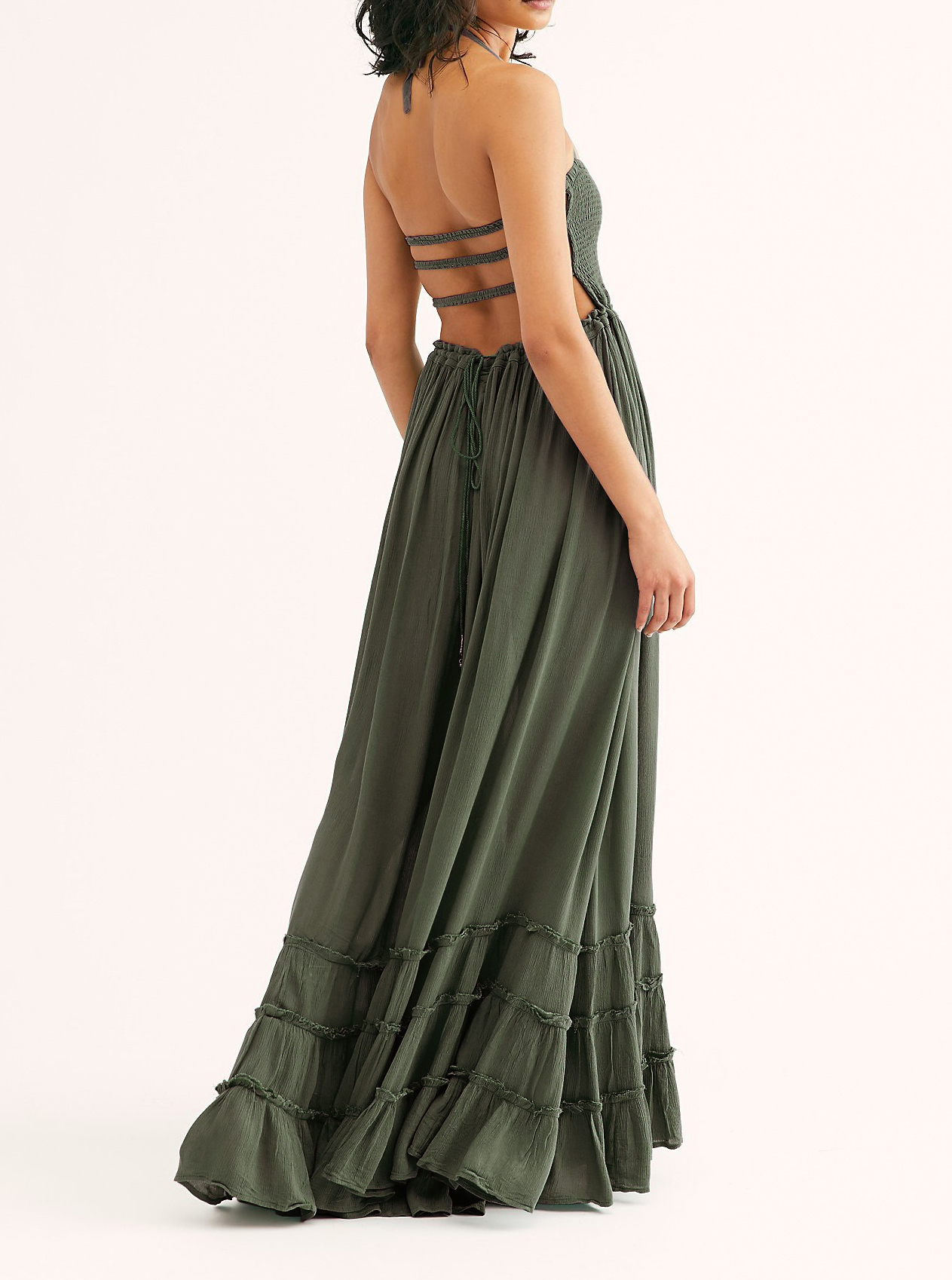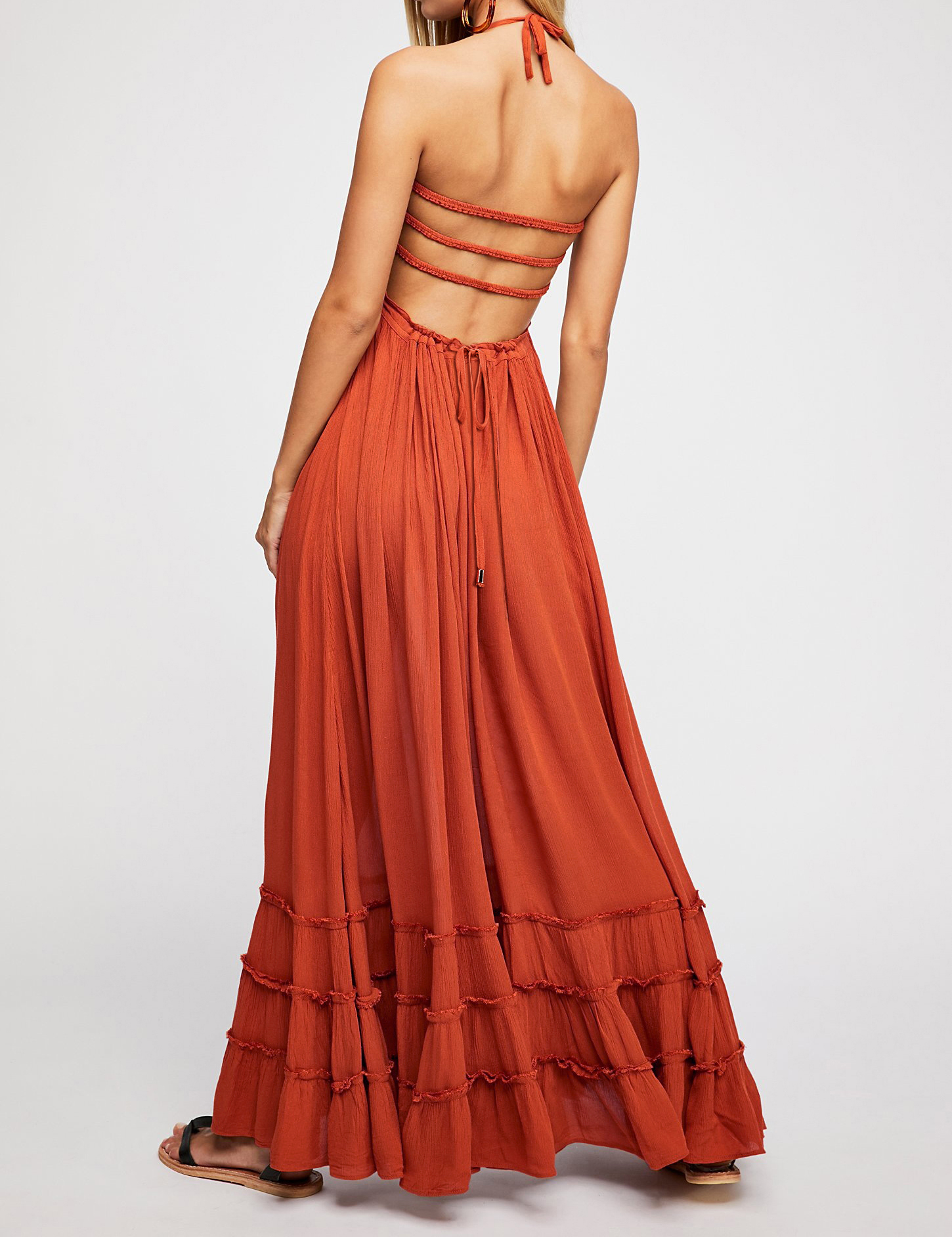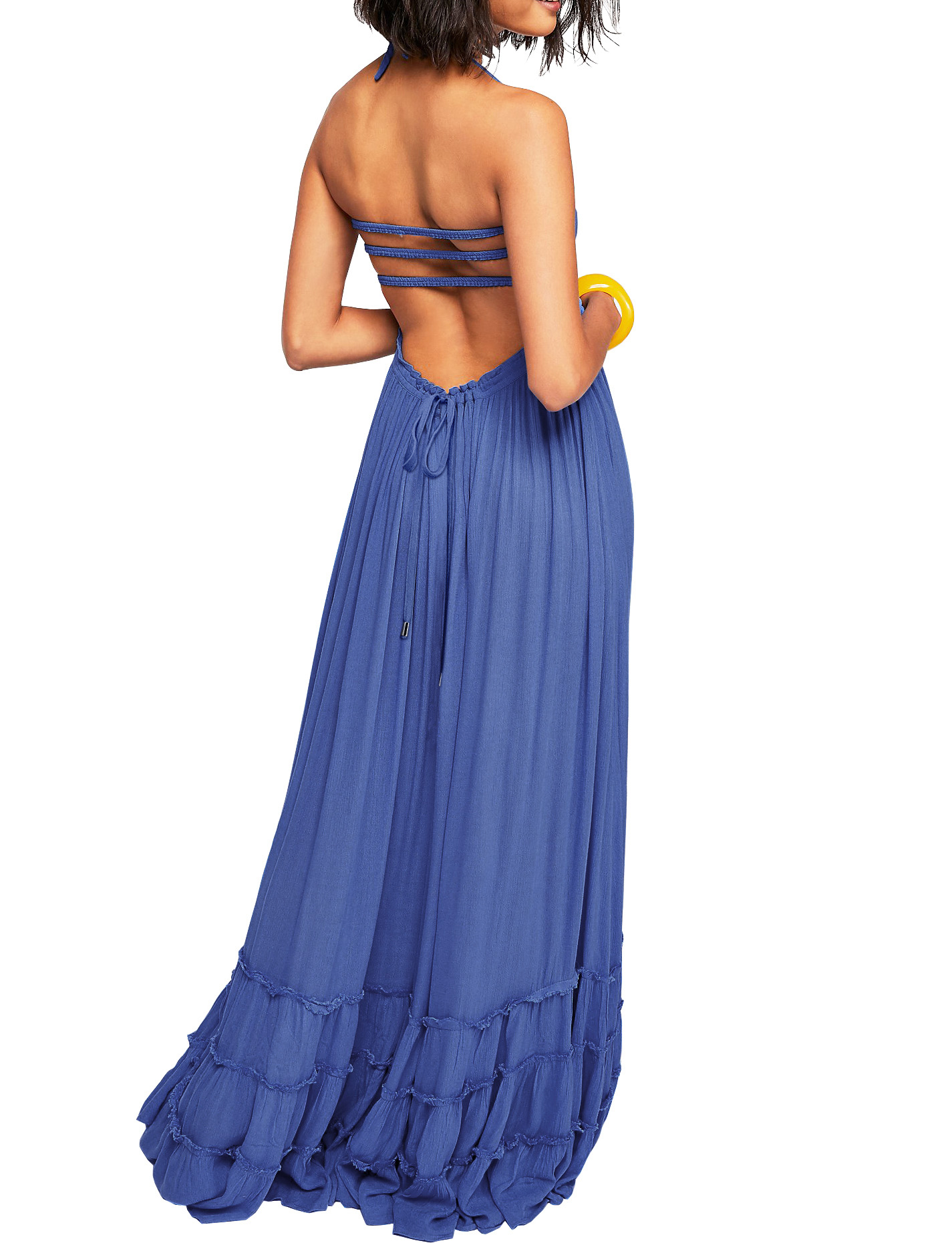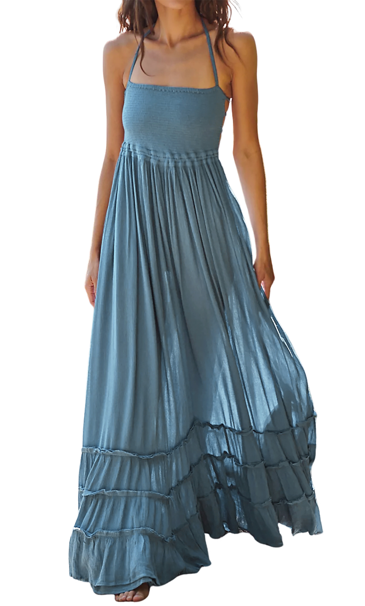 The summer maxi dress has adjustable ties which you can tighten/loosen the strings where you need to, so it fits nice and comfortable without being too tight. This halter dress will be a fantastic choice if you are looking for a dress combines boho with sexy and casual vibe!
