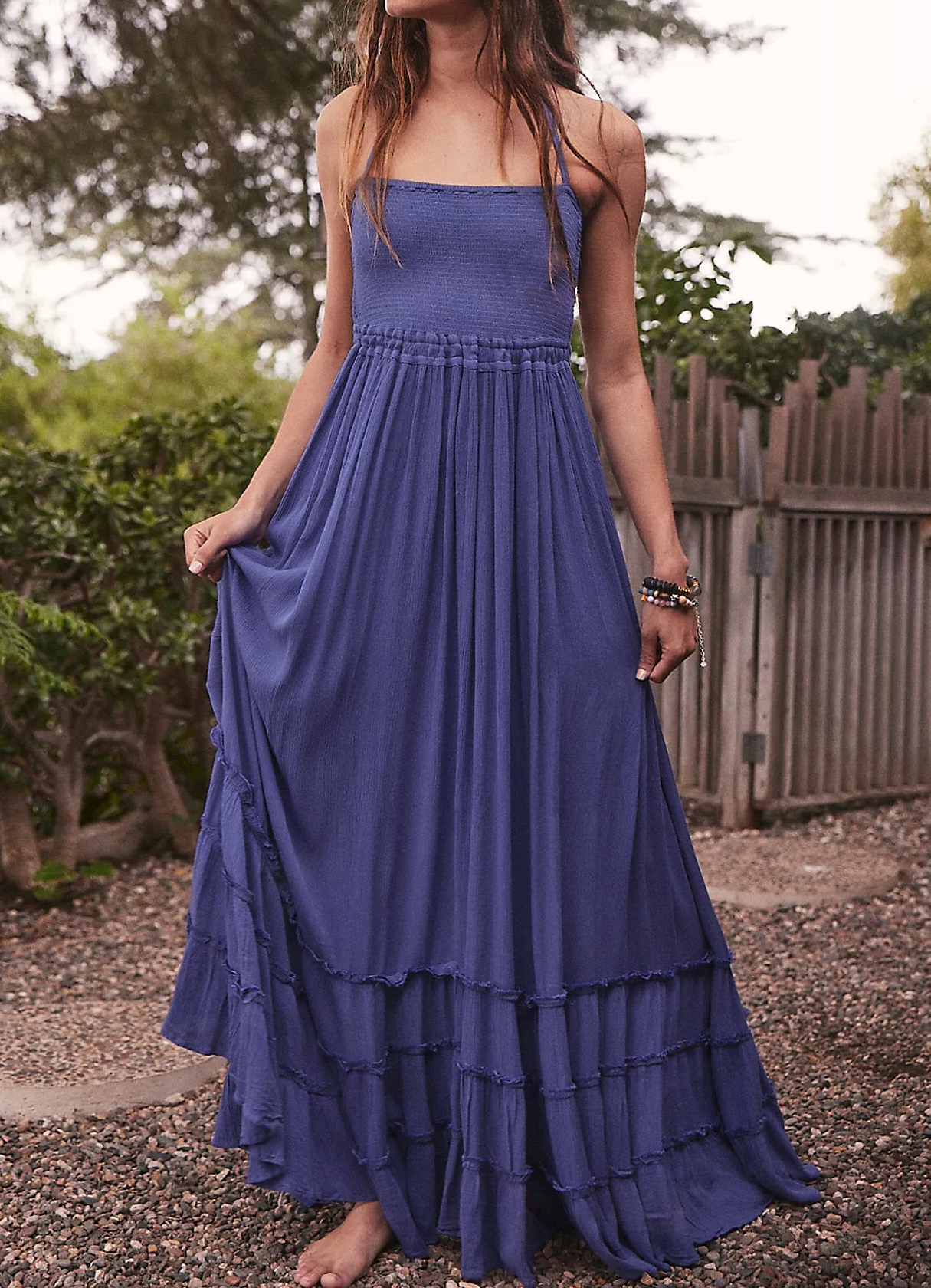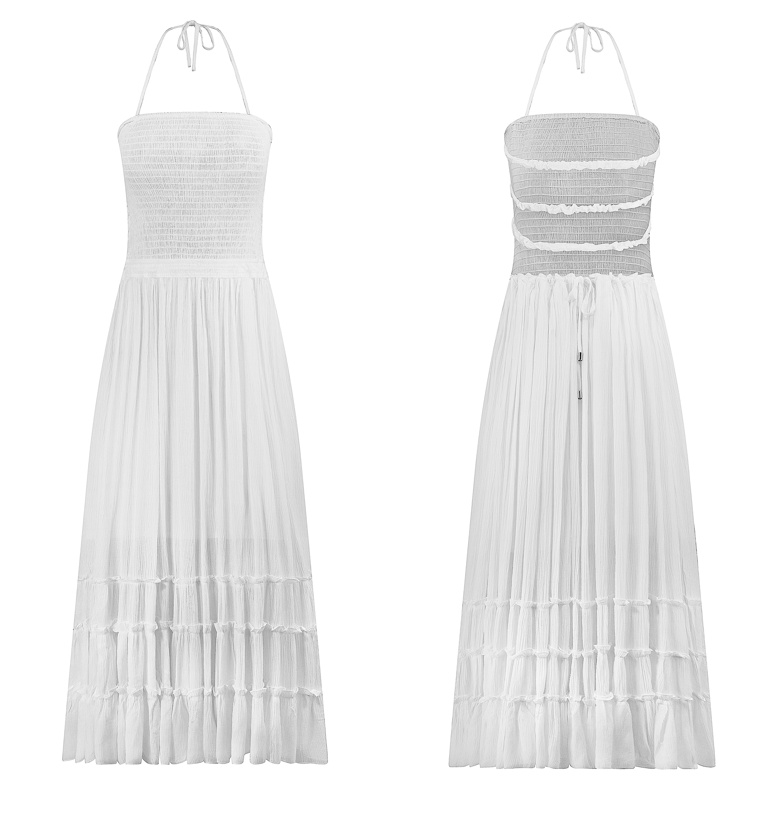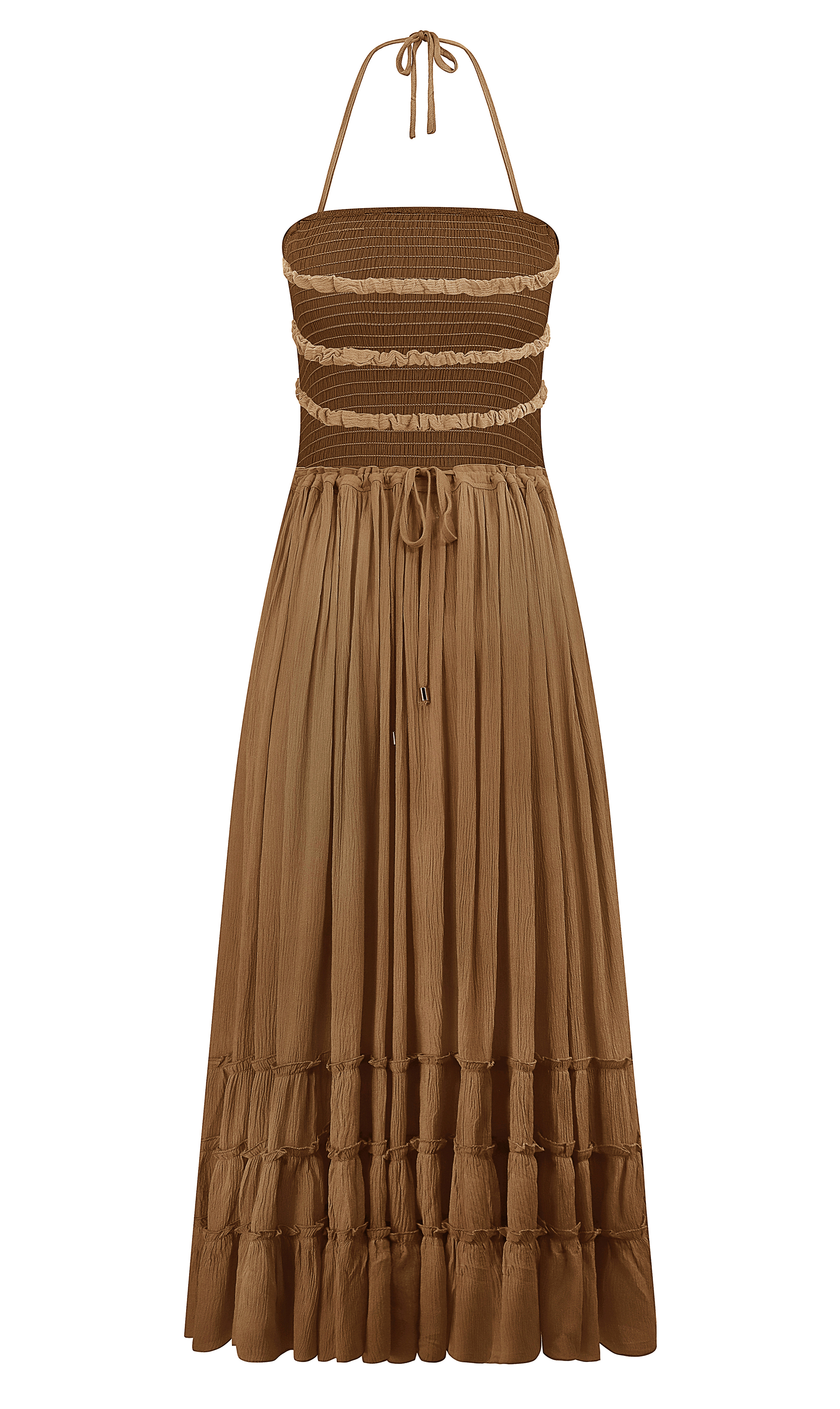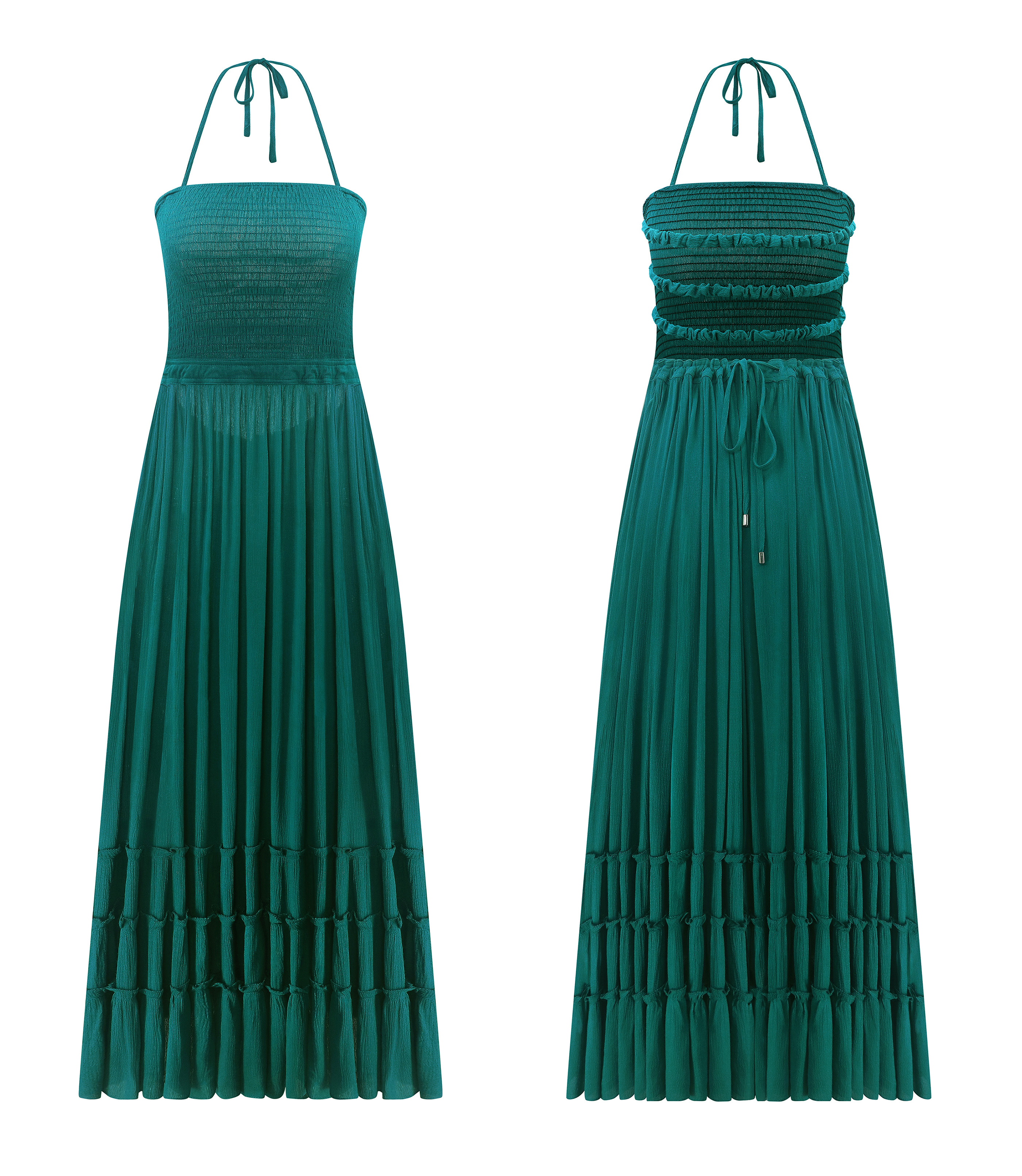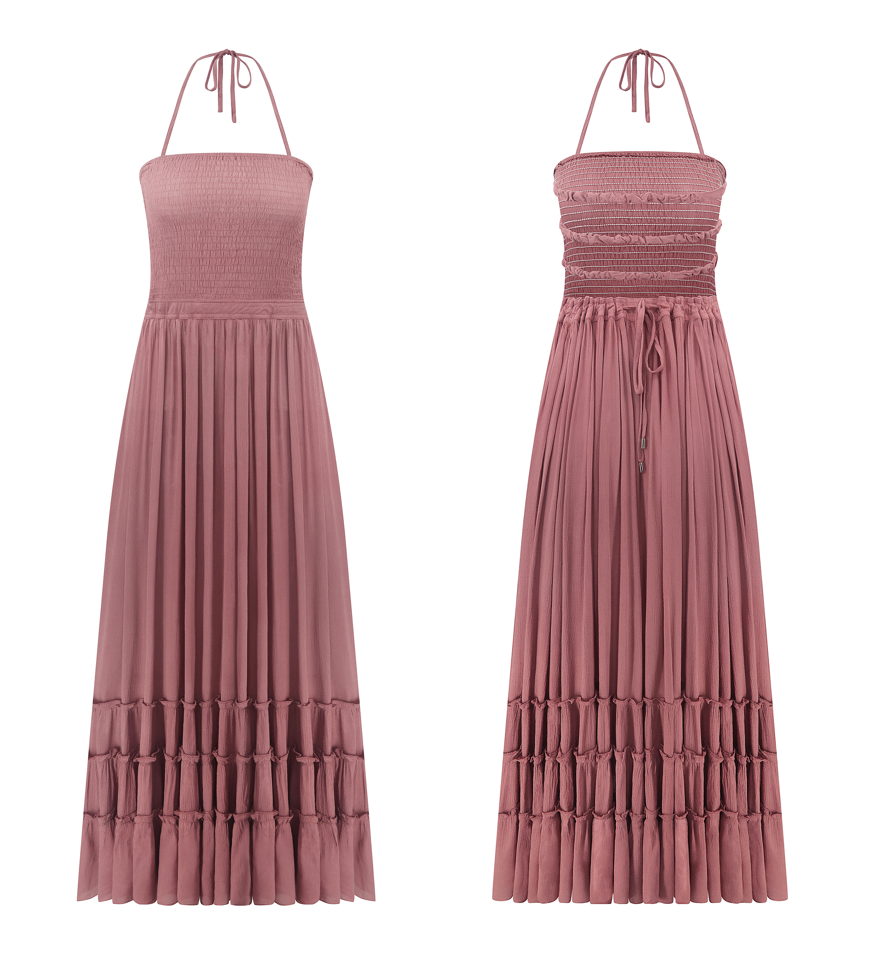 The slim fit dress blends romance and Bohemian, exuding a feminine vibe! It features a smocked bodice which flexibly fit different bust sizes while keep snug at the chest area. In additions, adjustable tie at the halter and back waist make this dress easy fit and easy to throw on!