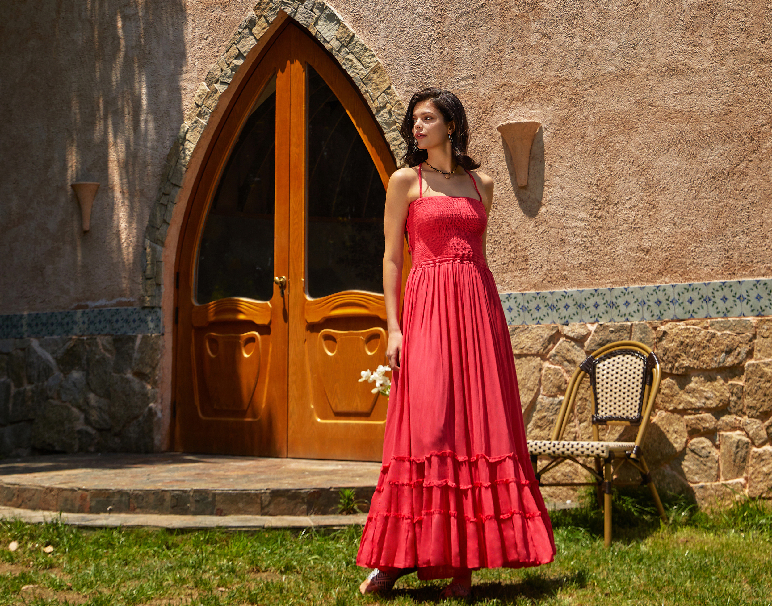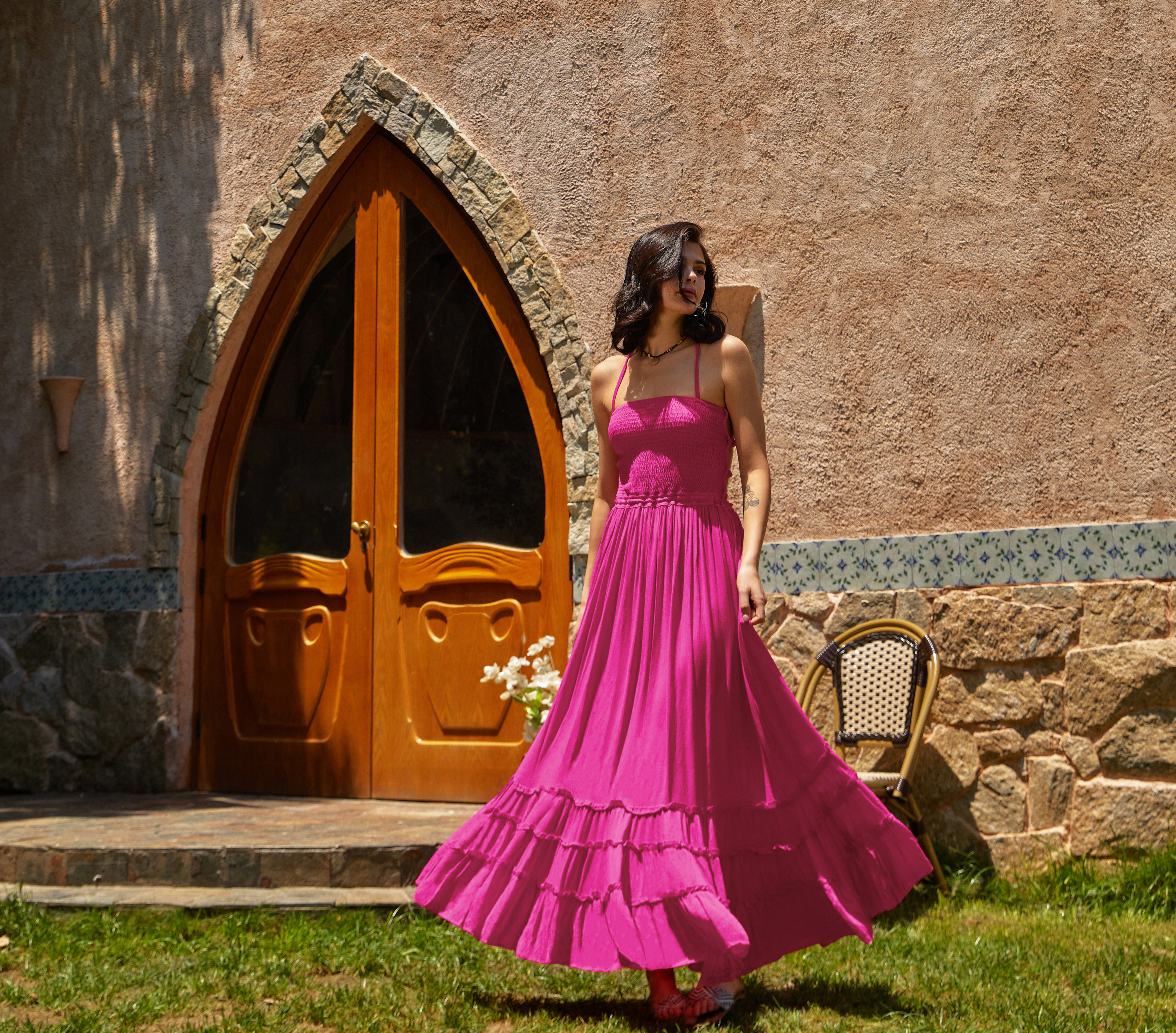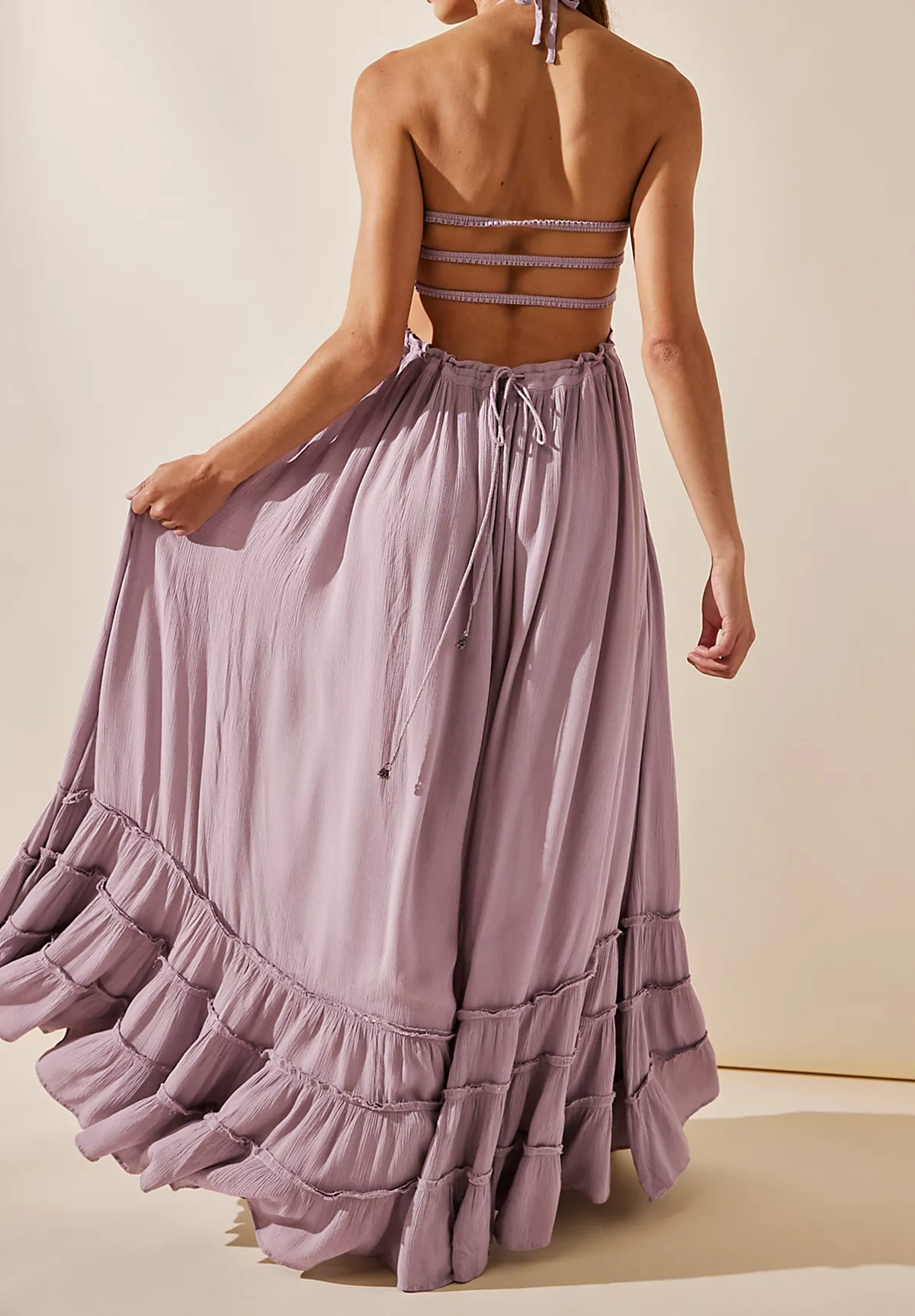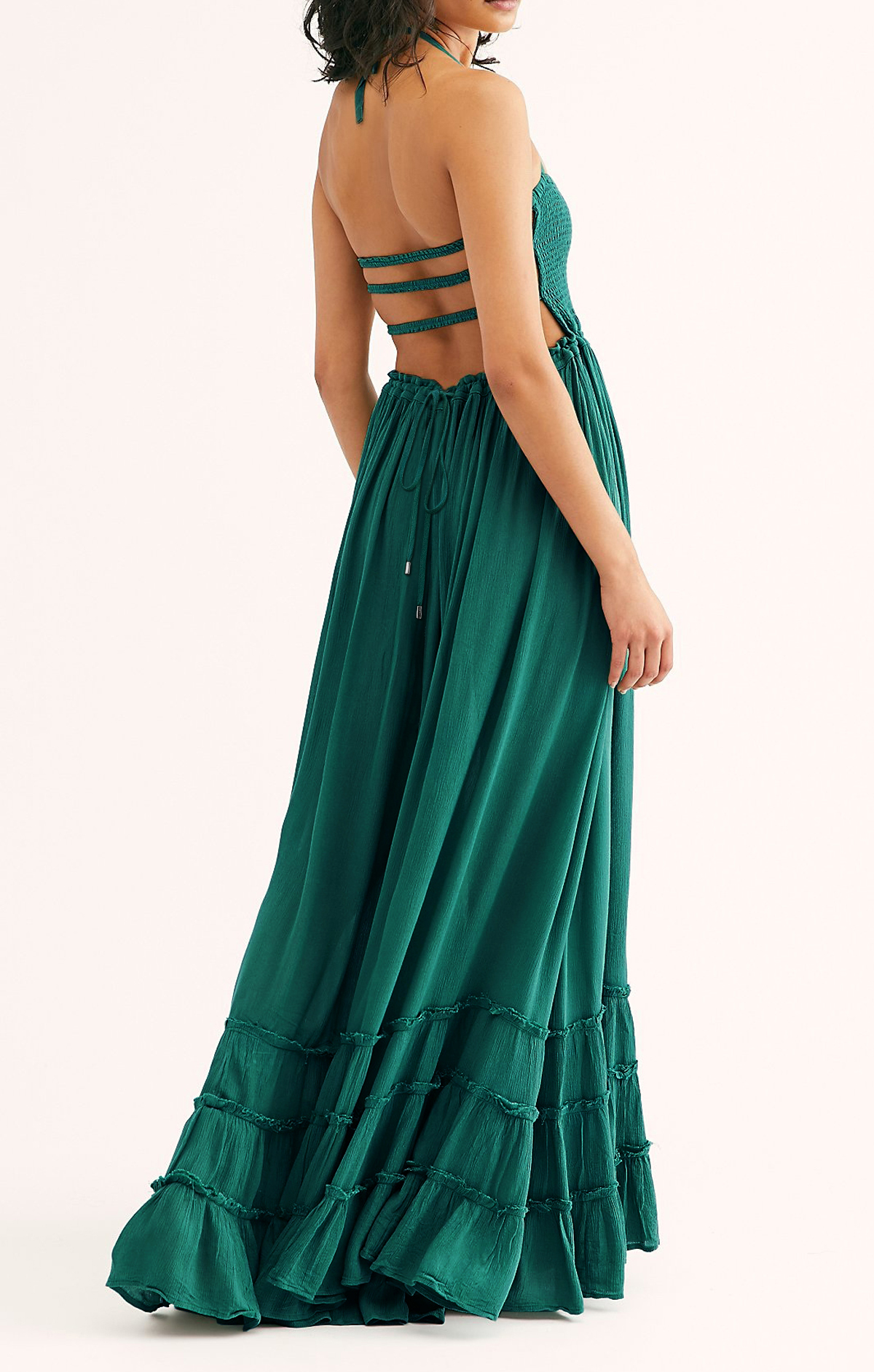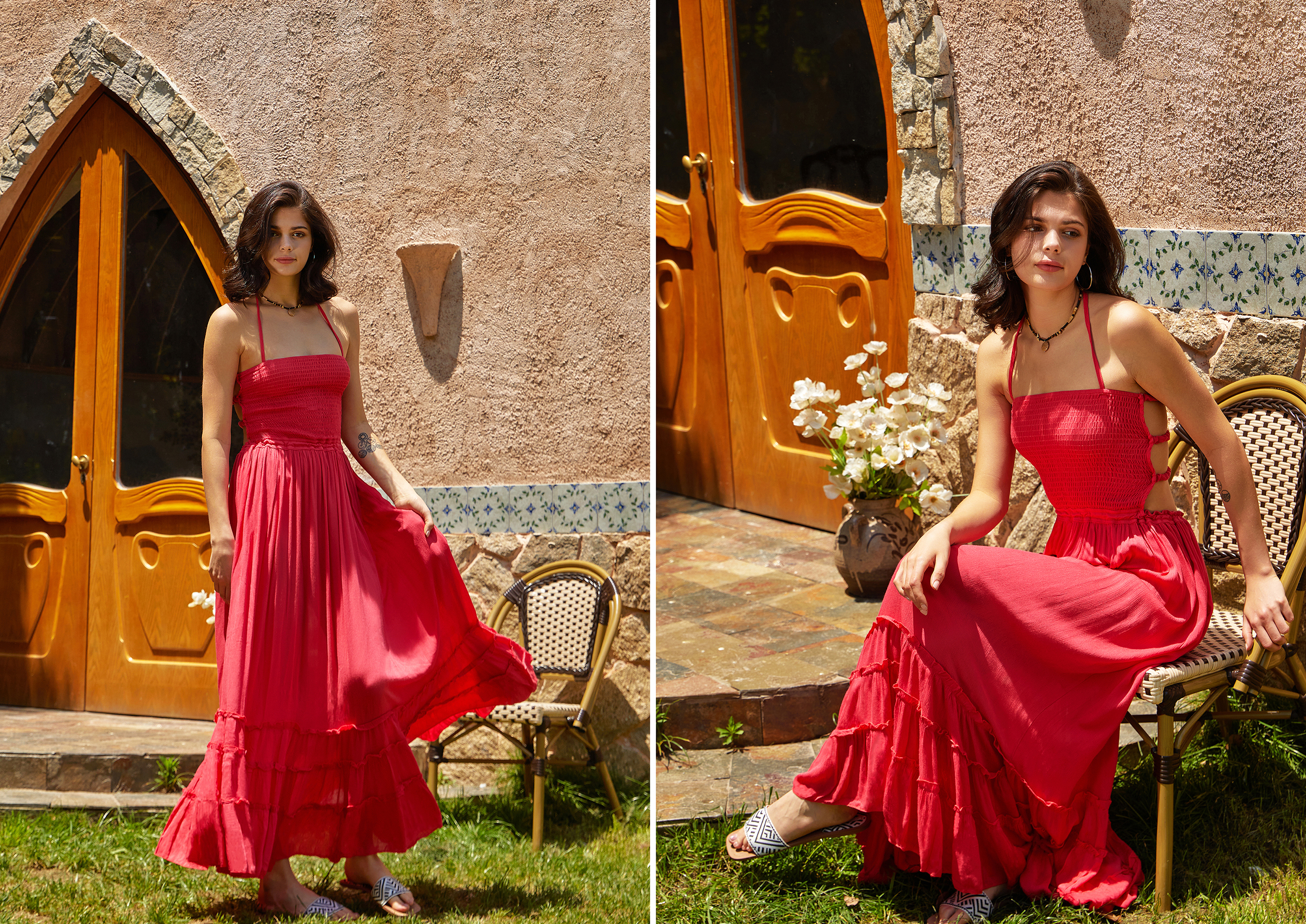 The tiered ruffle maxi silhouette is not only trendy but also flattering. The dress drapes beautifully, creating a flowy fit. The open back and ruffle hem design adds a sexy and playful feeling that is perfect for Summer Beach, Vacation, Holiday, Party, Engagement Photo Shoot, Travel, Carnival, etc.