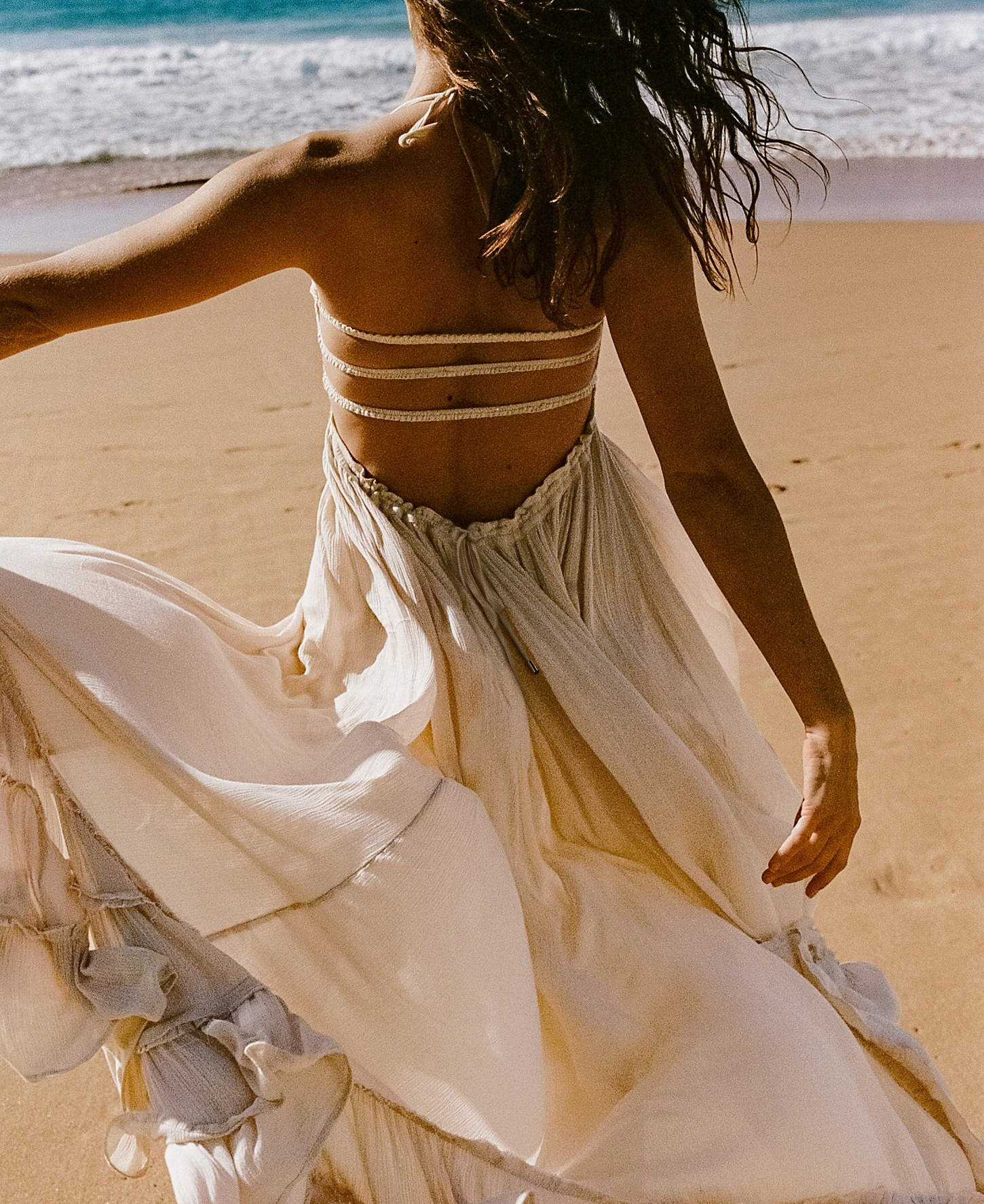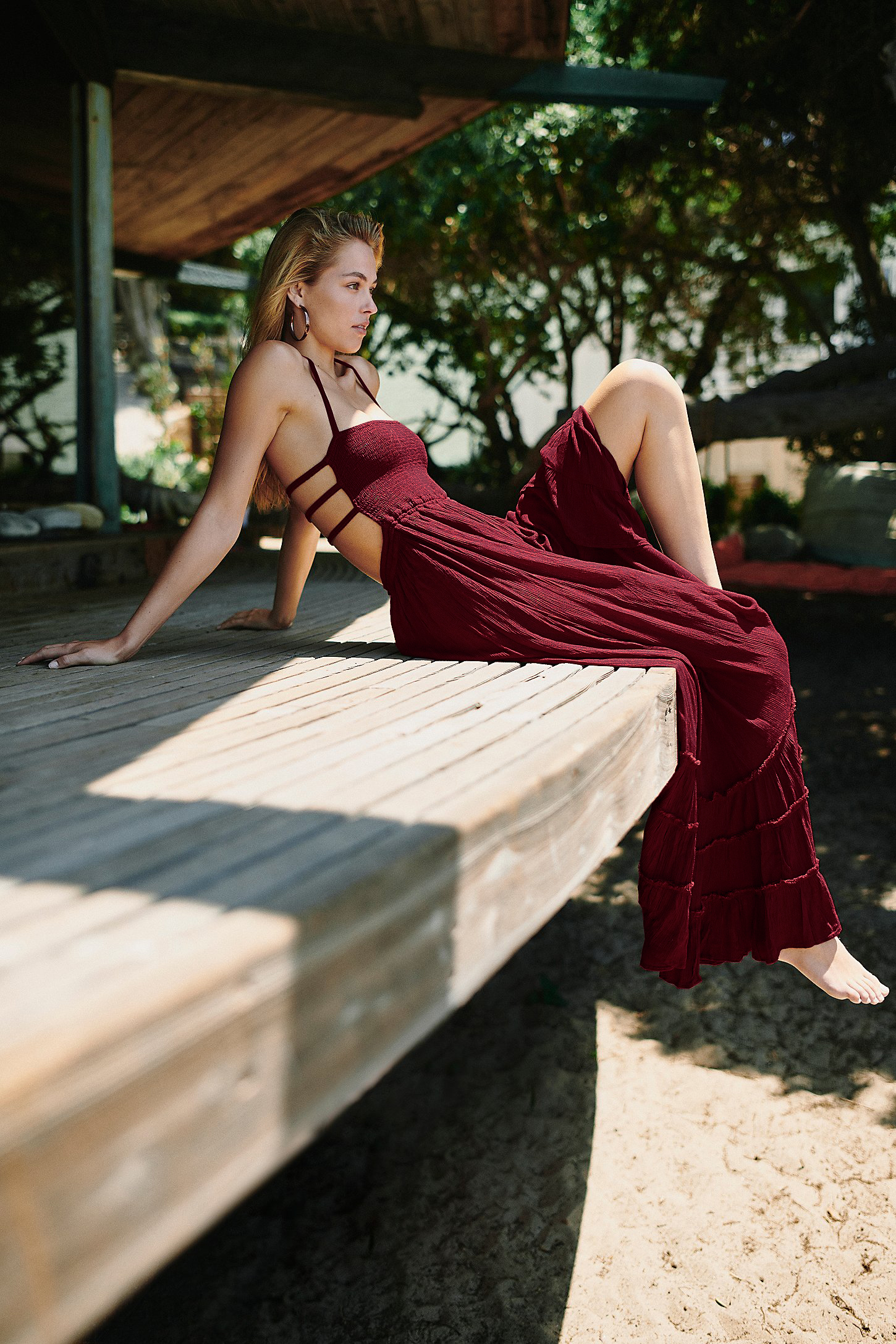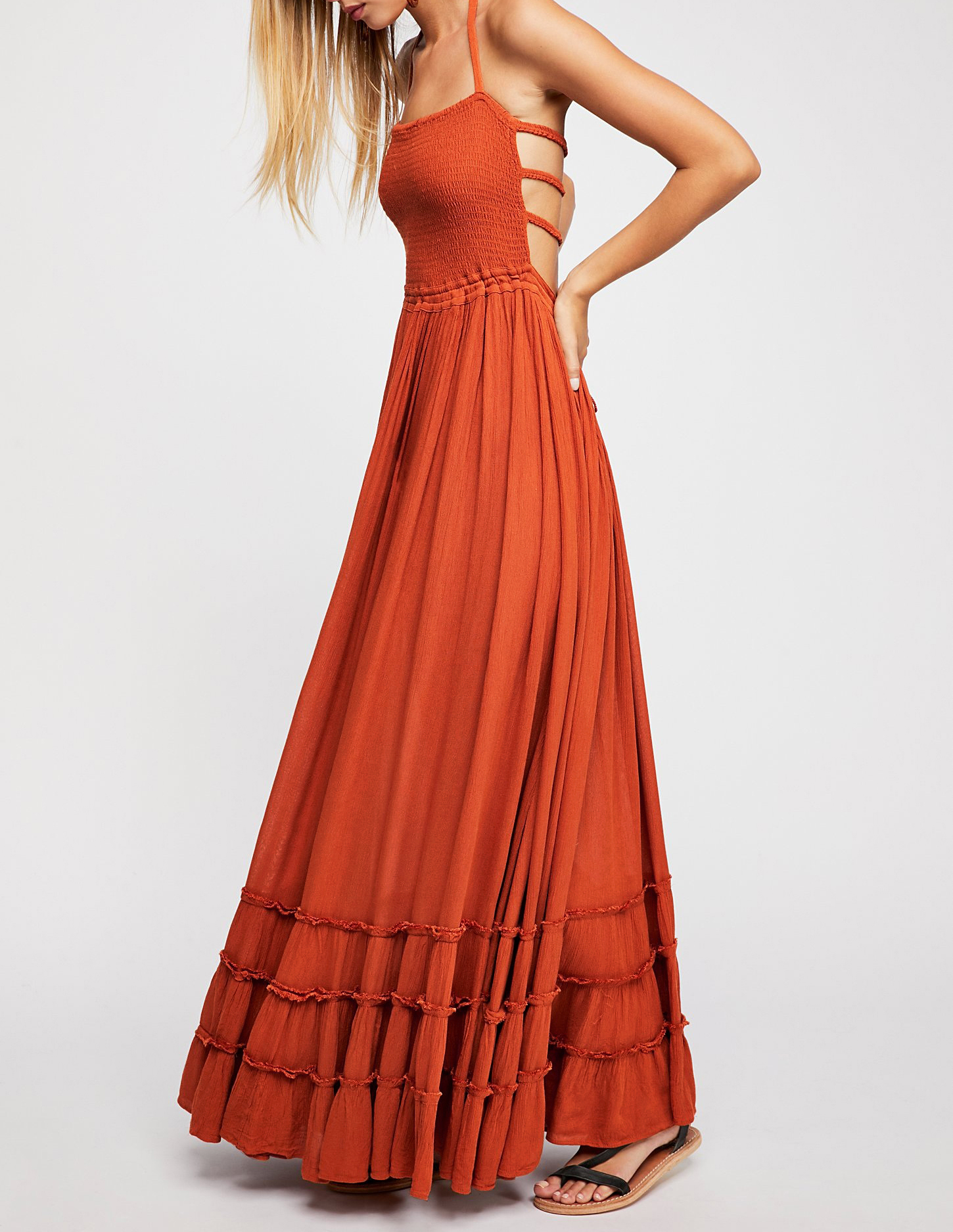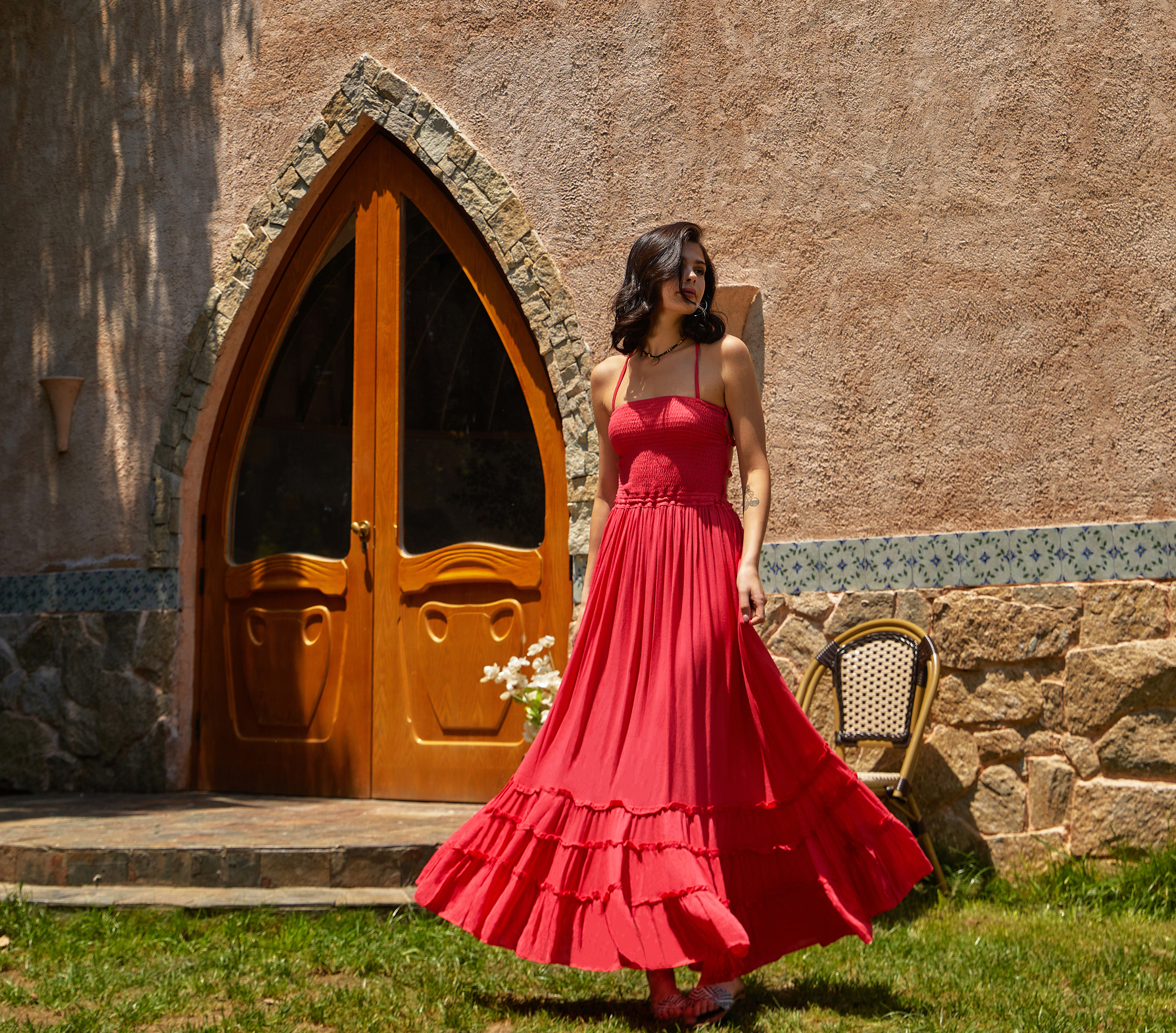The tiered ruffle maxi silhouette is not only trendy but also flattering. The dress drapes beautifully, creating a flowy fit. The open back and ruffle hem design adds a sexy and playful feeling that is perfect for Summer Beach, Vacation, Holiday, Party, Engagement Photo Shoot, Travel, Carnival, etc.