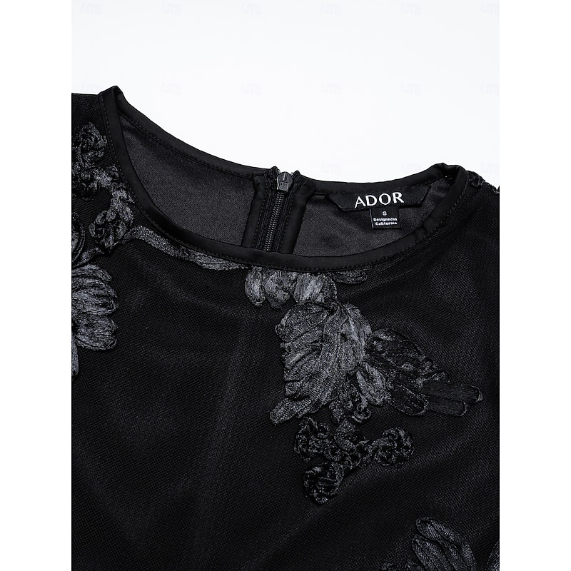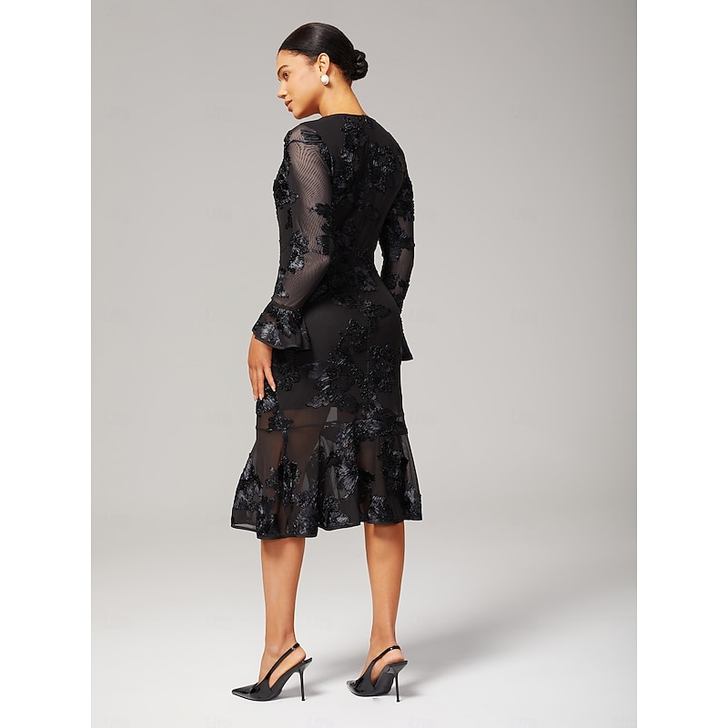 More information about Women's Black Dress Party Dress Cocktail Dress Black Long Sleeve Embroidered Embroidery Winter Spring & Fall Elegant Party Party S M L