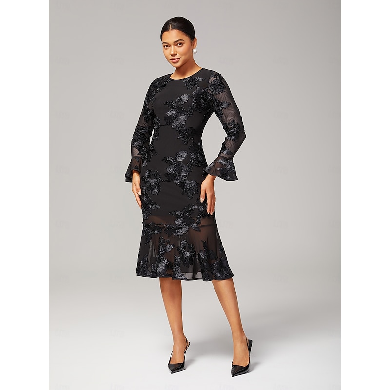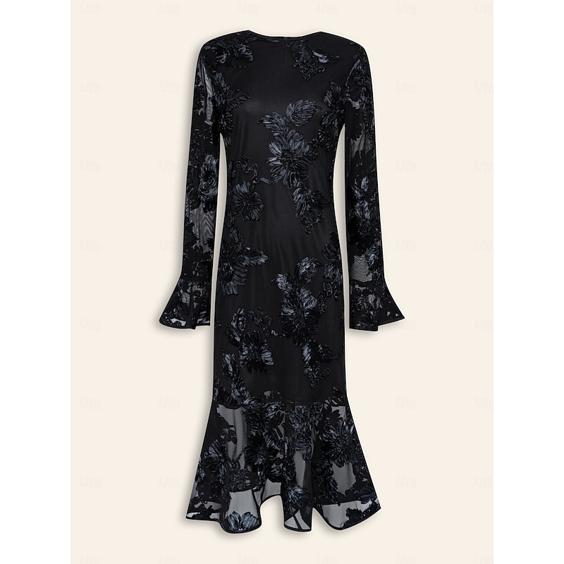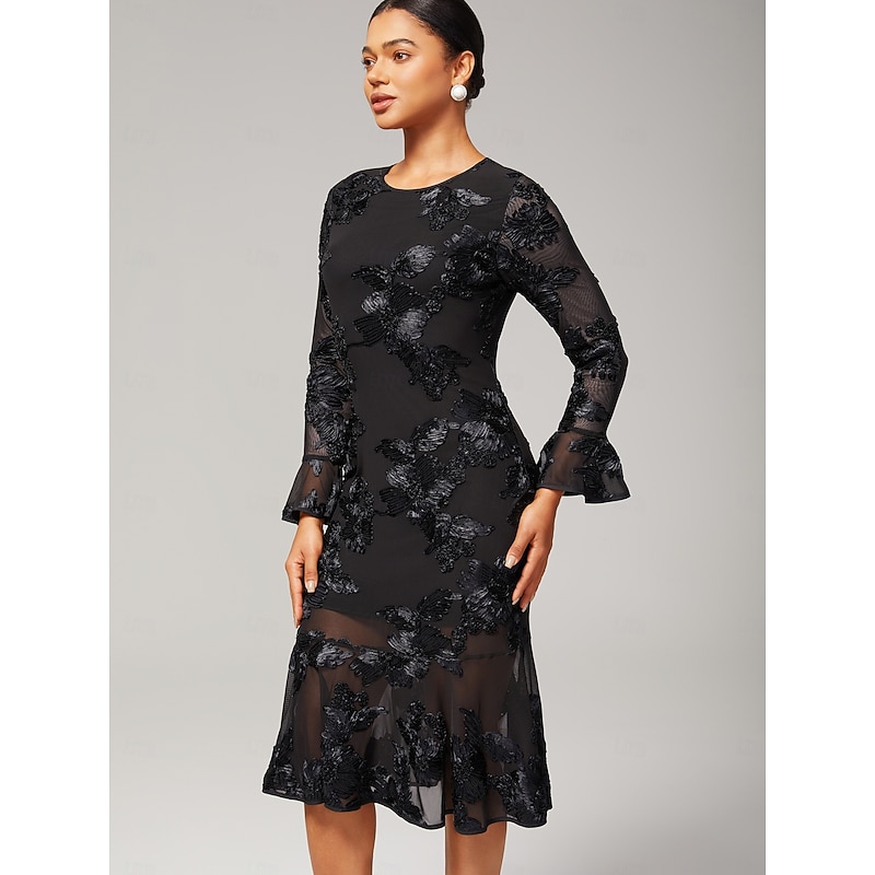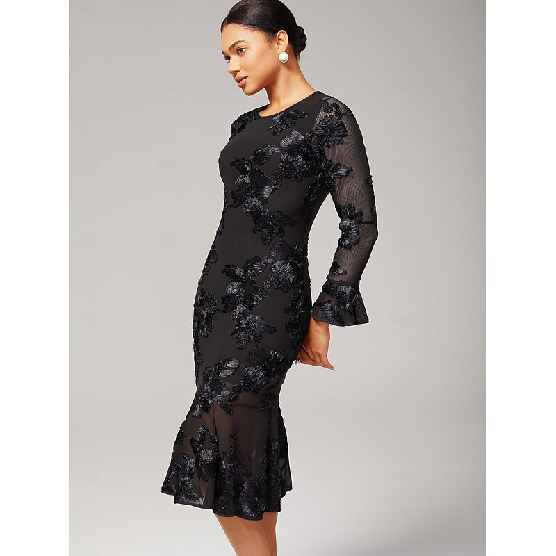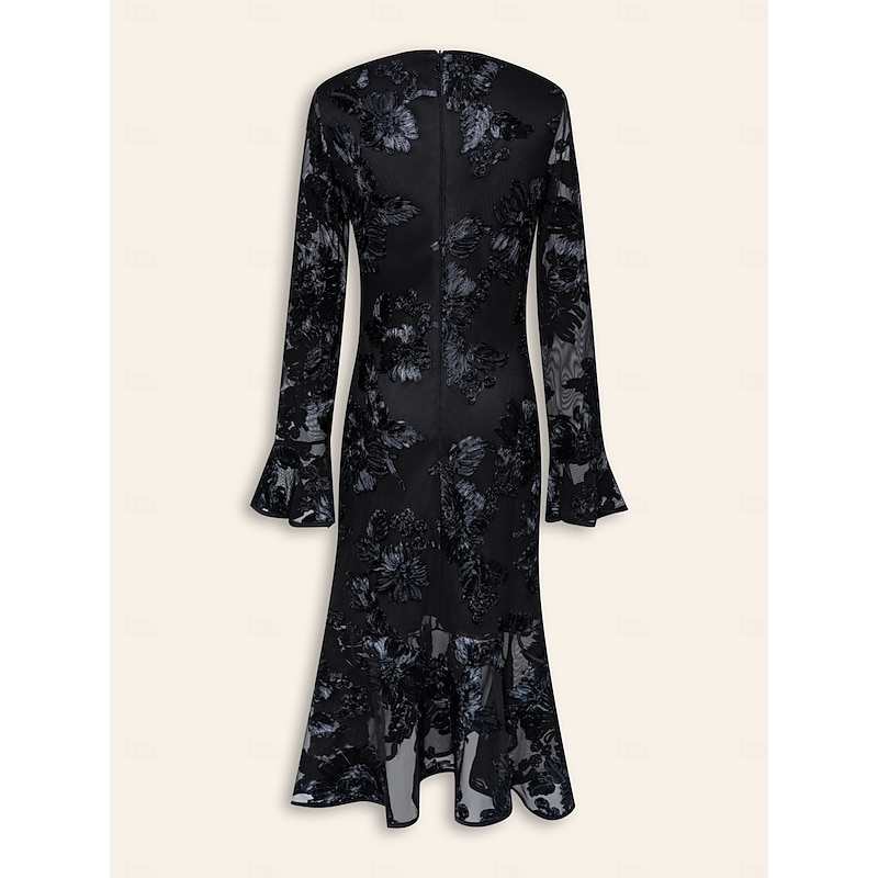 HOT ! Women's Black Dress Party Dress Cocktail Dress Black Long Sleeve Embroidered Embroidery Winter Spring & Fall Elegant Party Party S M L