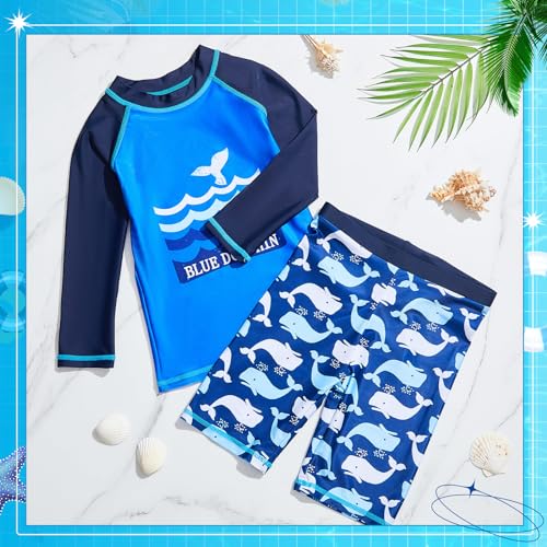 • Vibrant Summer Designs: our summer swimsuits for kids are predominantly blue, capturing the essence of the ocean; Featuring dynamic designs such as whales, and waves, these sets are bound to become a favorite with your boys; The lively patterns make swimming even more enjoyable for your little ones