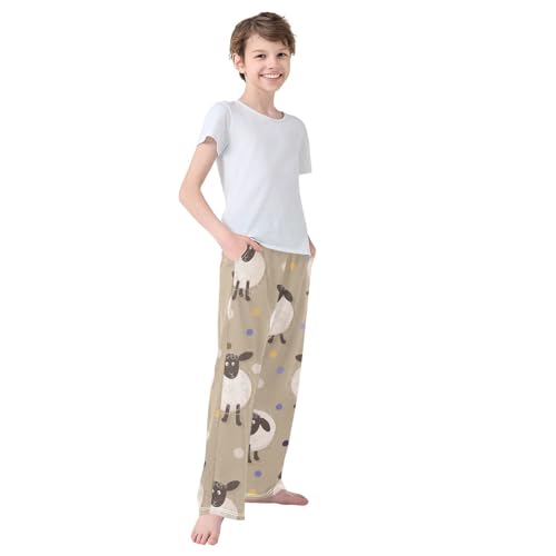 Color Dot Sheep Boys Pants Boys Athletic Pants Long Pant for Boywith Pockets Wide-Leg Size 6-14Y 6