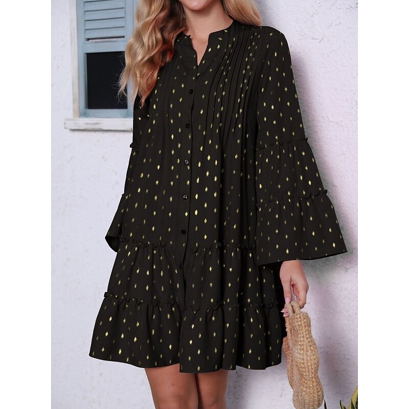 More information about Women's Geometric Stand Collar Mini Dress Long Sleeve Summer Spring