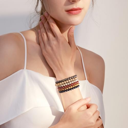 6Pcs 8mm Wooden Beaded Bracelet Bangle for Men and Women Elastic 4