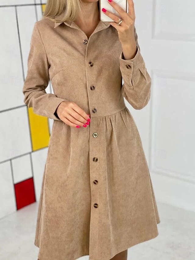 HOT ! Women's Mini Dress Shirt Dress Classic Modern Outdoor Vacation Weekend Regular Fit Plain Long Sleeve Shirt Collar Black Blue Purple Khaki Fall