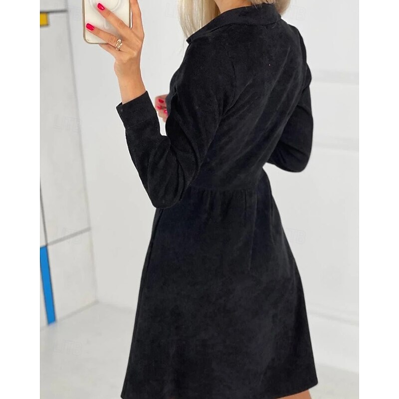 More information about Women's Mini Dress Shirt Dress Classic Modern Outdoor Vacation Weekend Regular Fit Plain Long Sleeve Shirt Collar Black Blue Purple Khaki Fall