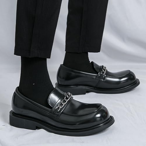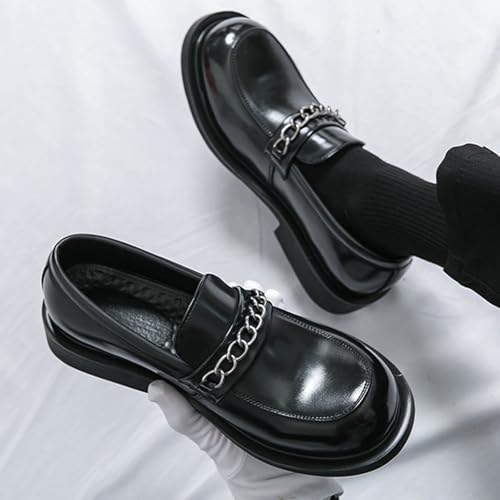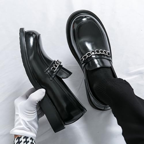 Men's Leather Chunky Platform Loafers Vintage Round Toe Metal Chain Anti-Slip Heel Slip-On Dress Shoes for Business, Party, Evening 6