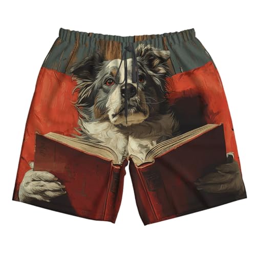 Men Swim Trunks Beach Shorts Swimwear Summer Bathing Suits - Dog Reading Book Retro 6