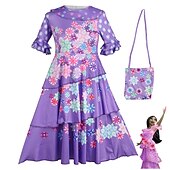 HOT ! Girls' Encanto Dress with Bags Mirabel Isabela Luisa Madrigal Cosplay Costume Flower Girl Dress Vacation Dress Cute Movie Cosplay Outfit Children's Day Halloween Masquerade World Book Day Costumes